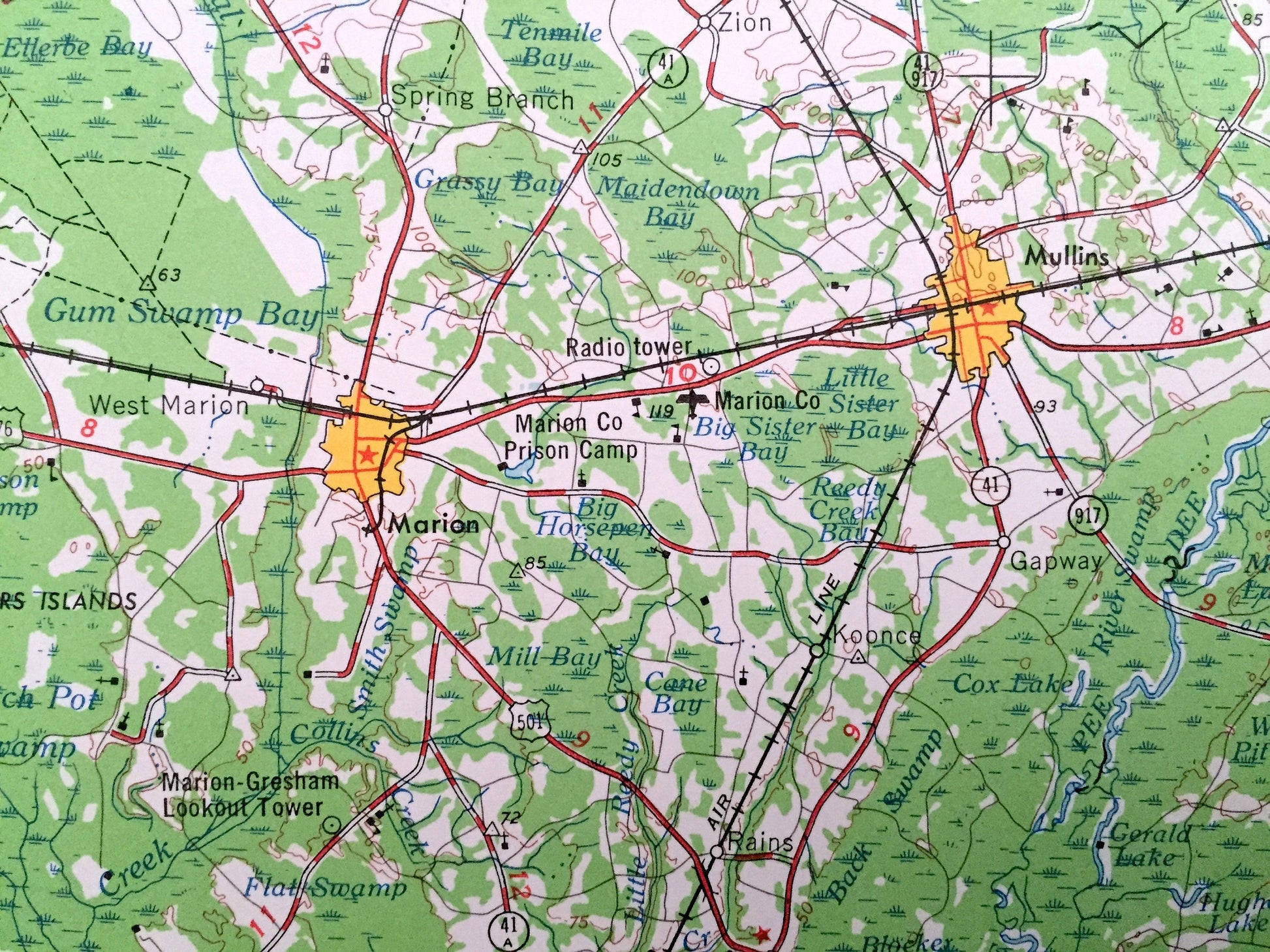 Points of Interest: SOUTH CAROLINA - Lynches River State Park, Lumber River, Pee Dee River, Rogers Islands, Byrds Islands, Witherspoons Island and lots more hills, mountains, lakes, islands, bays, highways and railroads.