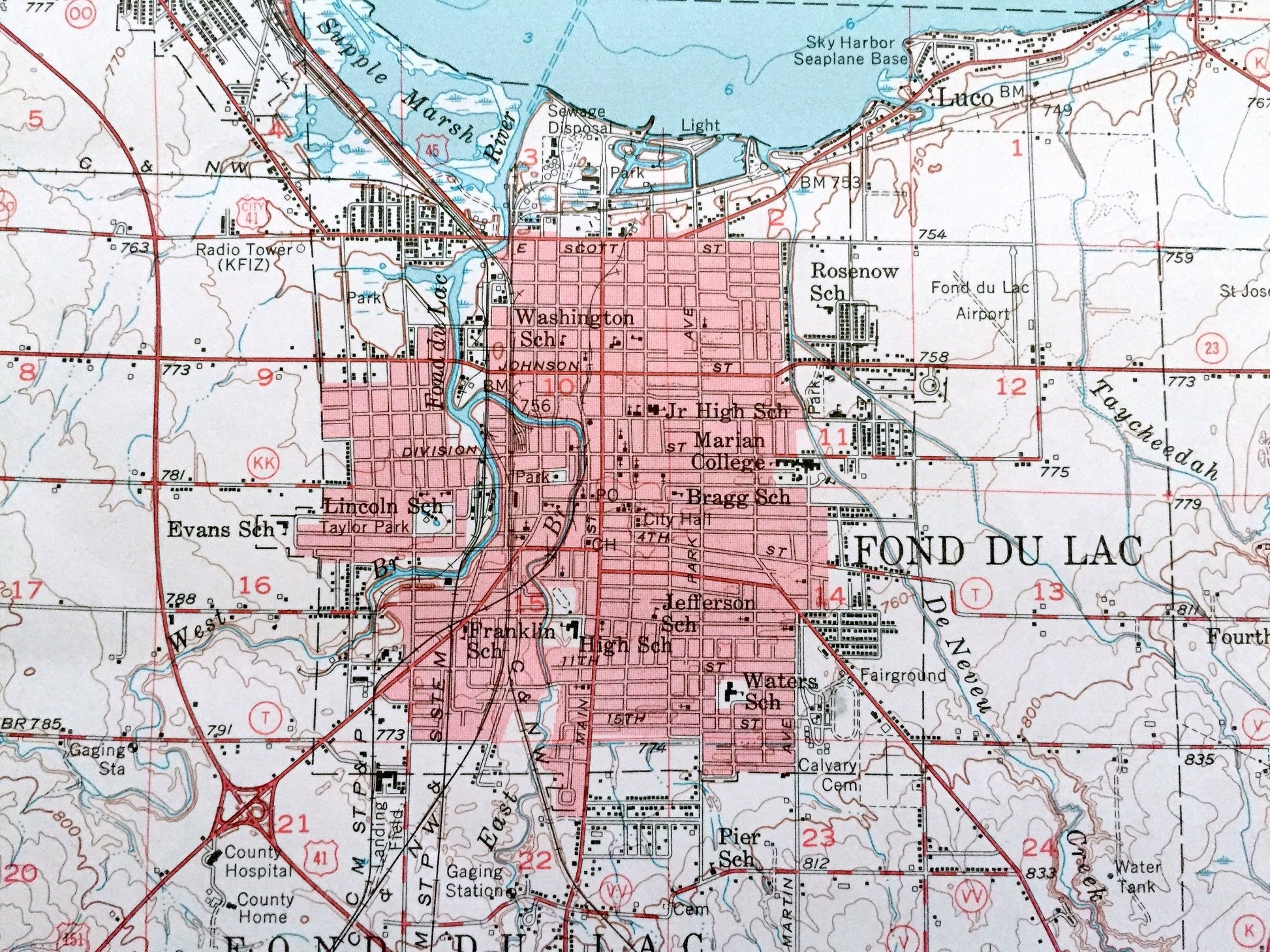 Antique Fond Du Lac, Wisconsin 1955 US Geological Survey Topographic Map – Winnebago, Calumet County, Lake, Oshkosh Taycheedah Black Wolf WI