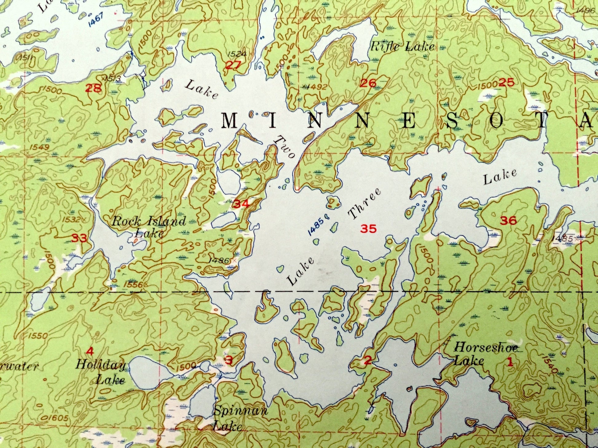 Points of Interest: Lake County, Minnesota State Forest, Superior National Forest, Snowbank Lake, Parent Lake, Disappointment Lake, Isabella Lake, Lake Insula, Isabella River, Island River, Kawishiwi River, Disappointment Mountain and many more roads, railroads, houses, ponds, hills, creeks, and lakes.