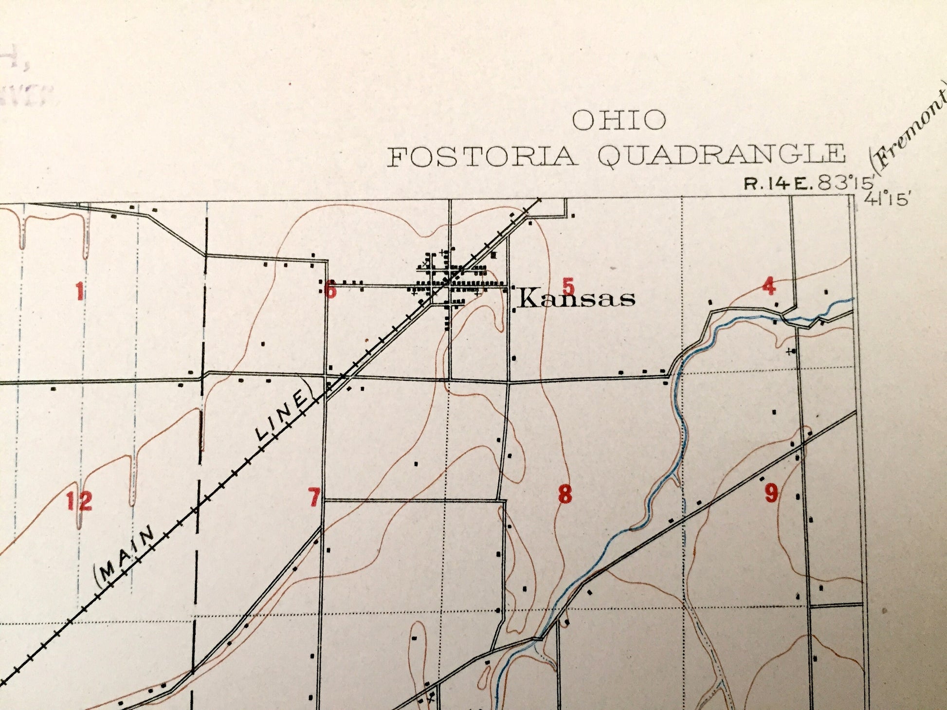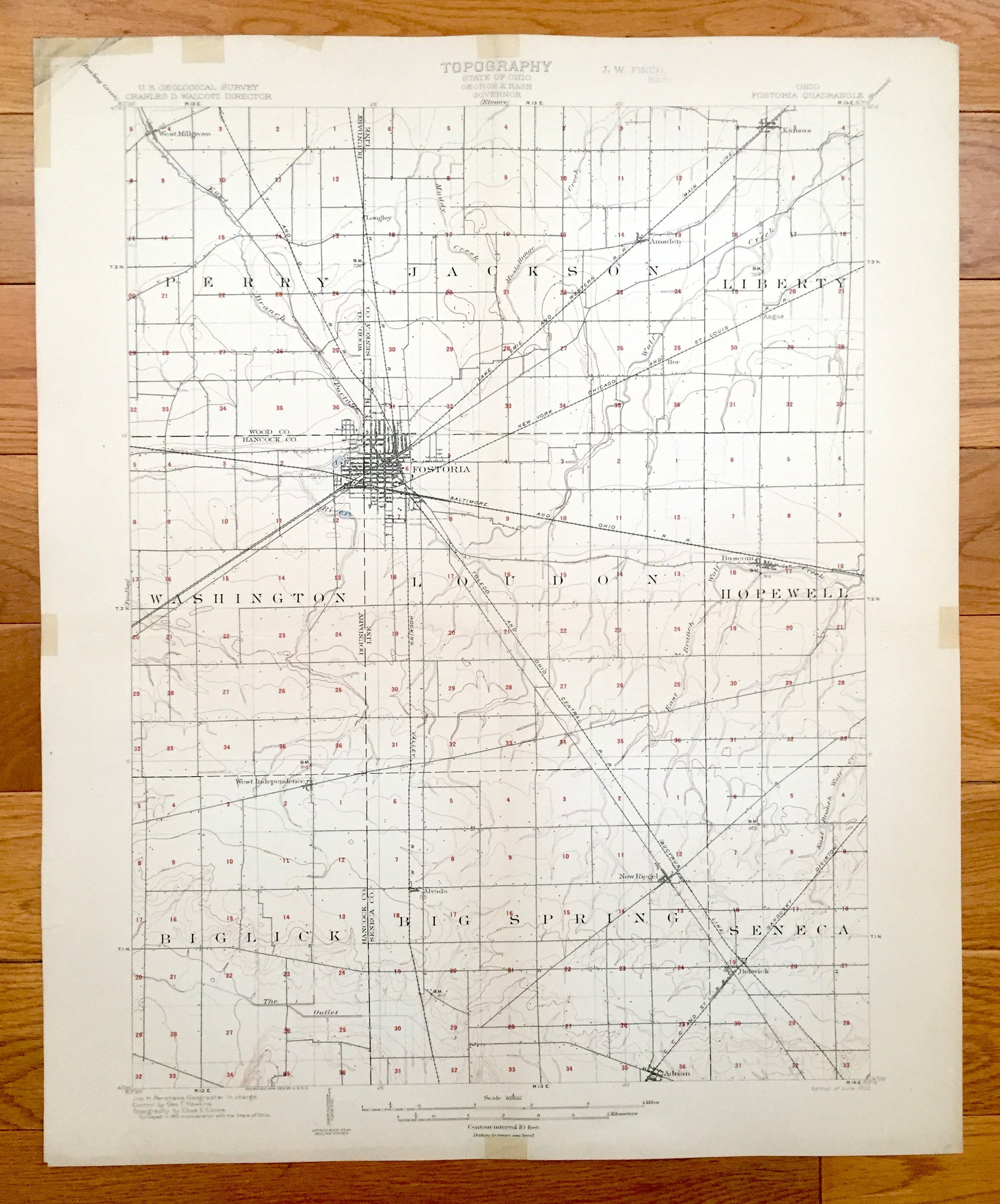 Beautiful, antique map of Fostoria, Ohio and surrounding Seneca, Hanock, and Wood County area. This is an authentic 1903 print from the U.S. Geological Survey and NOT a computer reproduction.