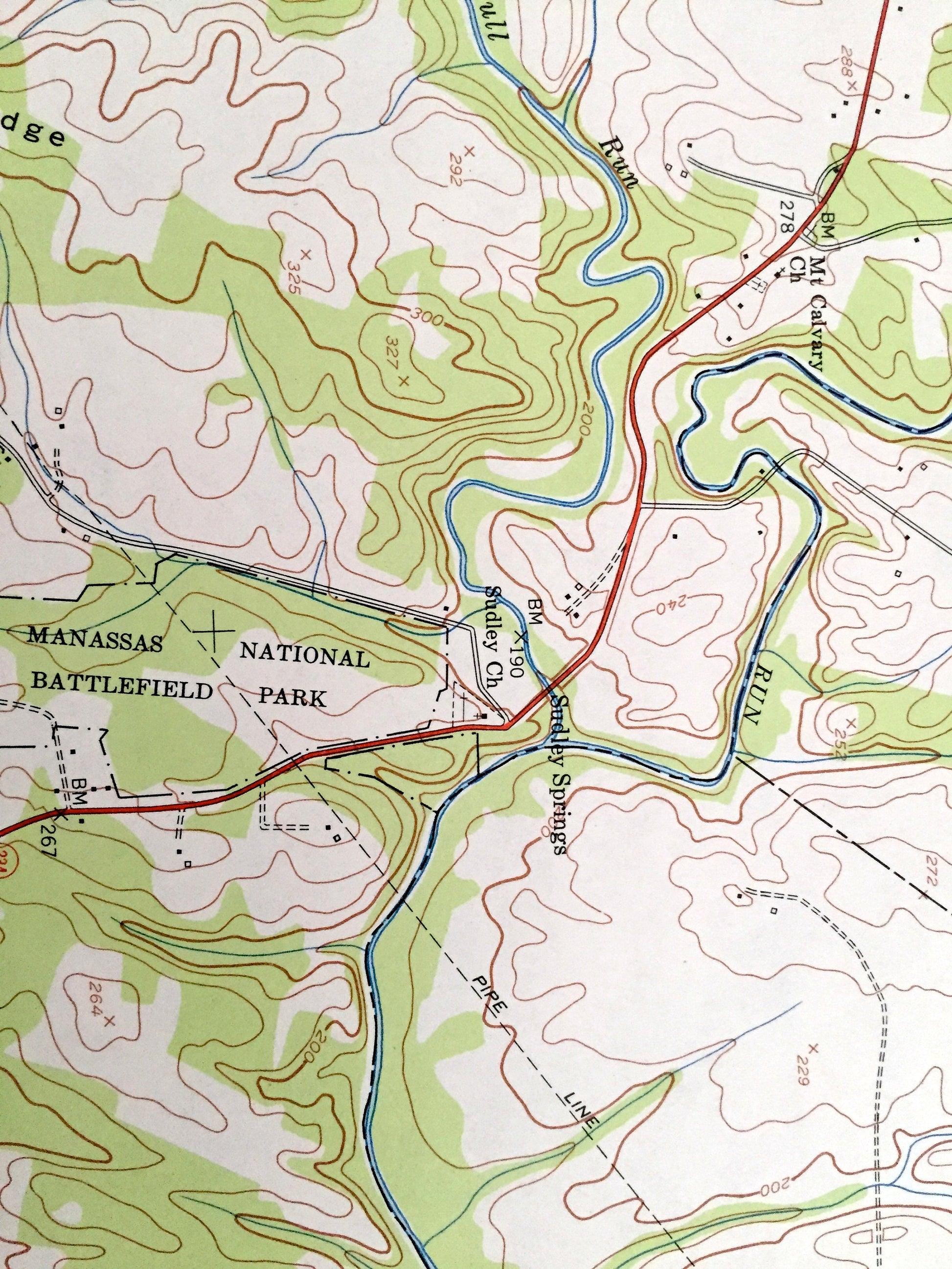 Points of Interest: Bull Run, Manassas National Battlefield Park, Catharpin Run, Stony Ridge, Broad Run, Stuarts Hill, Bald Hill, Southern Railroad, and many more hills, streams, ponds, houses, schools, churches and roads.