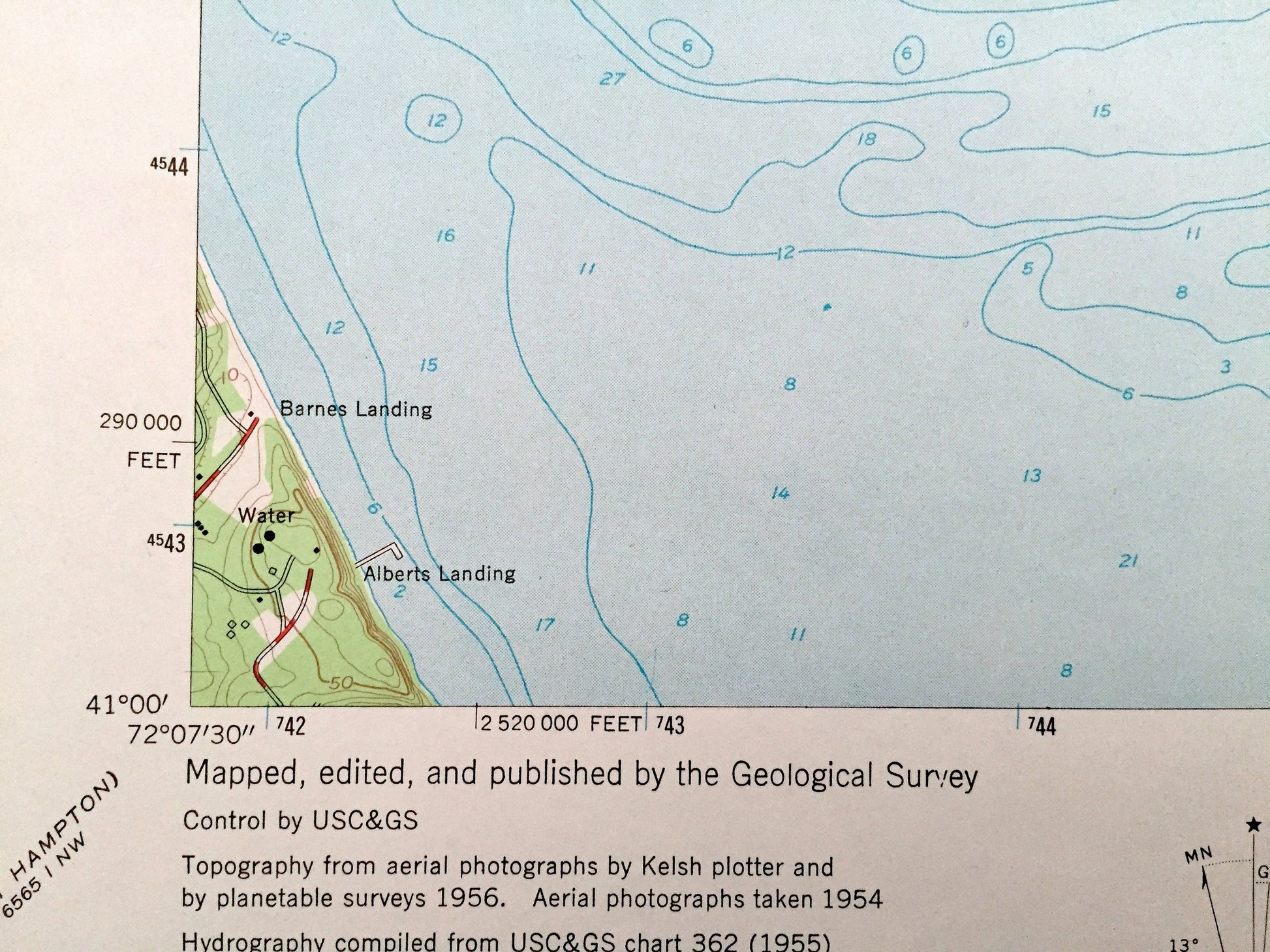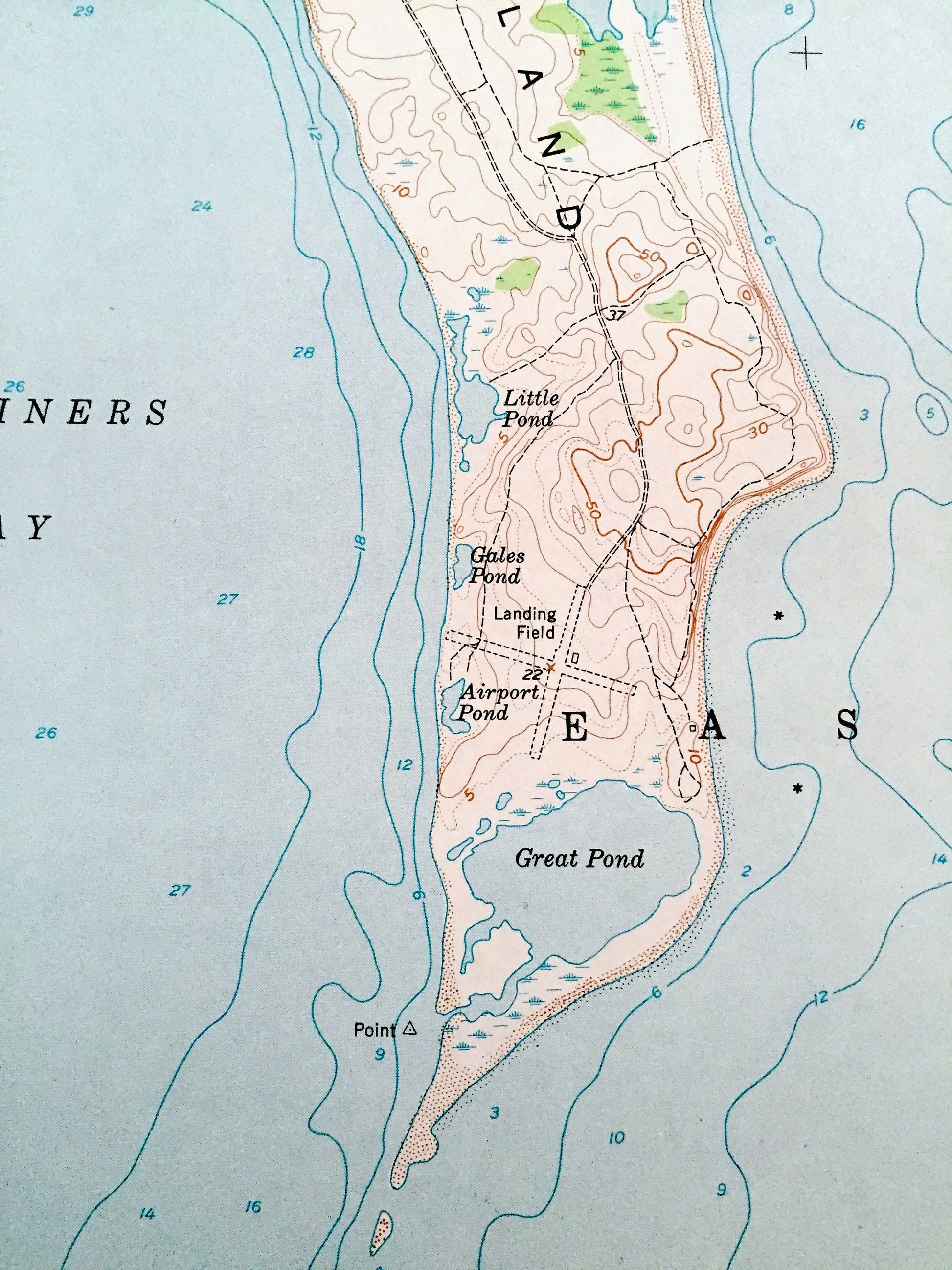 Beautiful, antique map of Gardiners Island East, New York and surrounding Eastern Suffolk County areas. This is an authentic 1956 edition, 1966 print from the U.S. Geological Survey and NOT a computer reproduction.