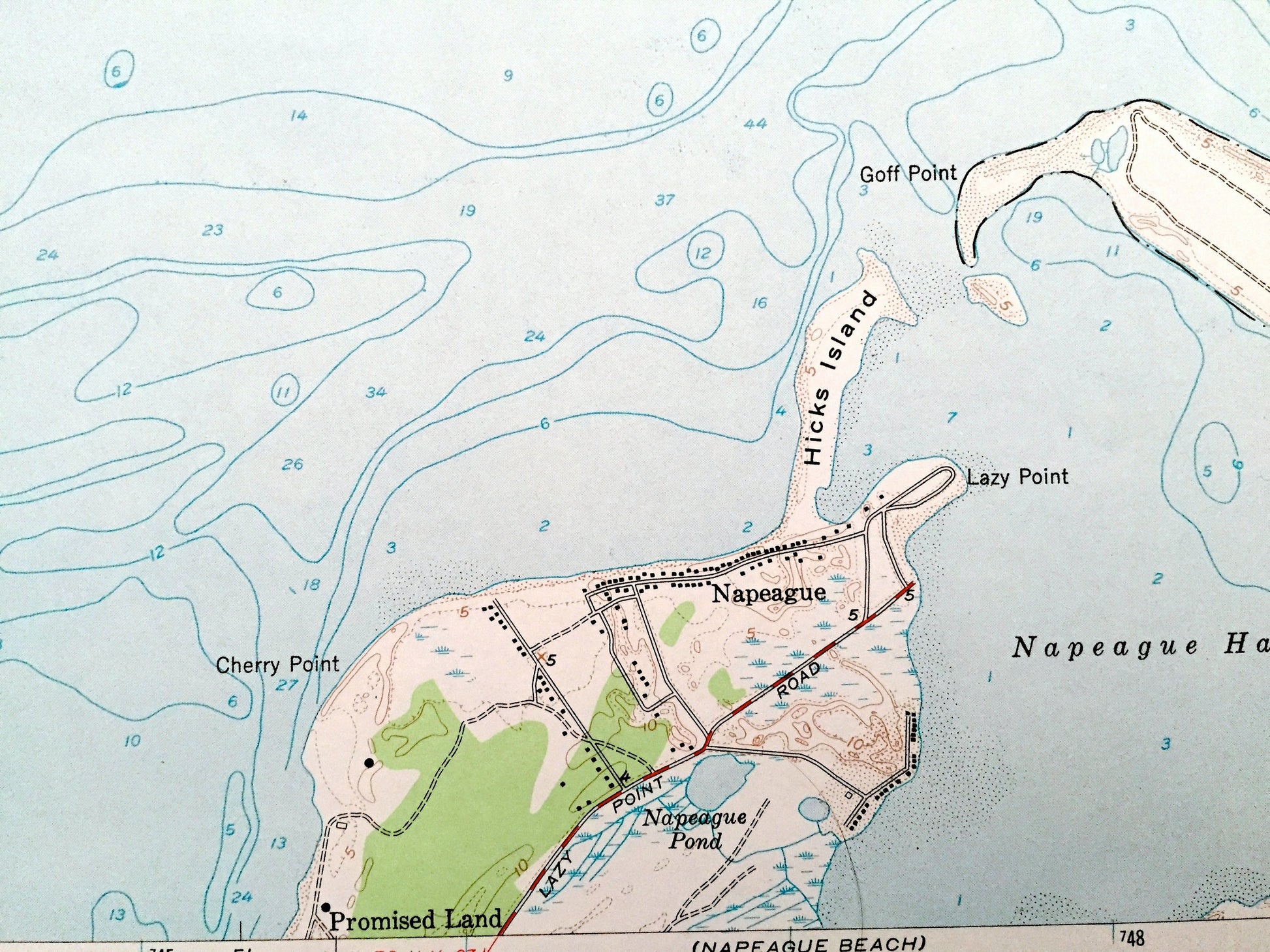 Points of Interest: Hither Hills State Park, Eastern Plain Point, Cherry Point, Lazy Point, Goff Point, Eastern Plain, Block Island Sound, Napeague Bay, Napeague Harbor, Napeague Beach, Atlantic Ocean, Cartwright Island, Hicks Island, Gardiners Bay, Tobaccolot Bay, Cherry Harbor, Bostwick Creek, Little Pond, Gales Pond, Airport Pond, Great Pond, Lily Pond, Napeague Pond, and many more roads, ponds, houses, beaches, islands, rivers, inlets, marshes, lighthouses and creeks.