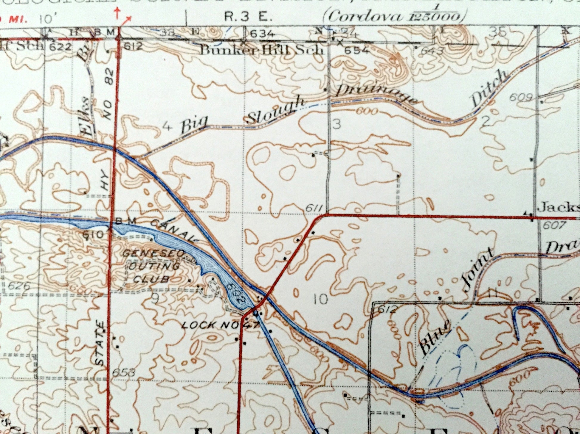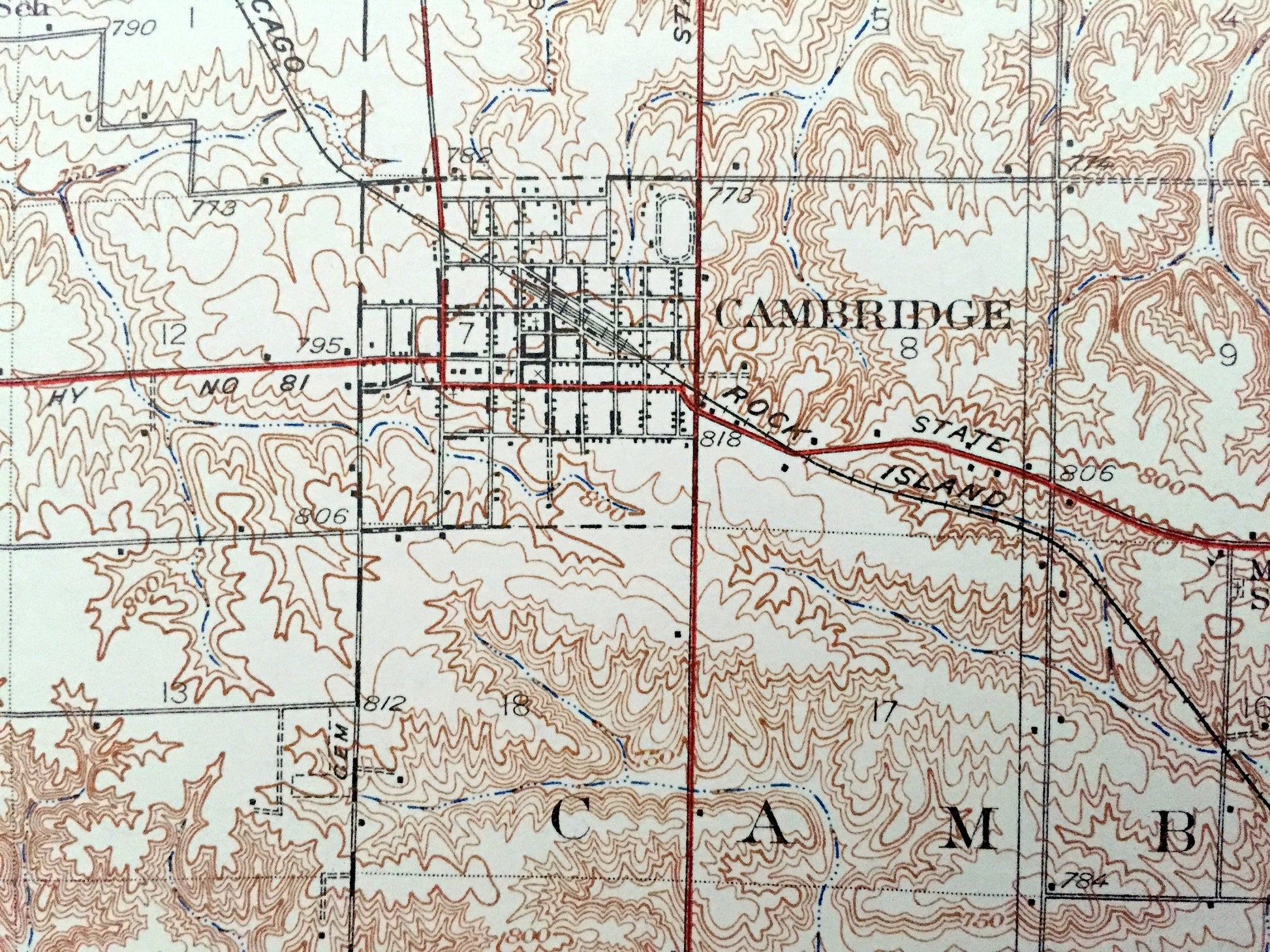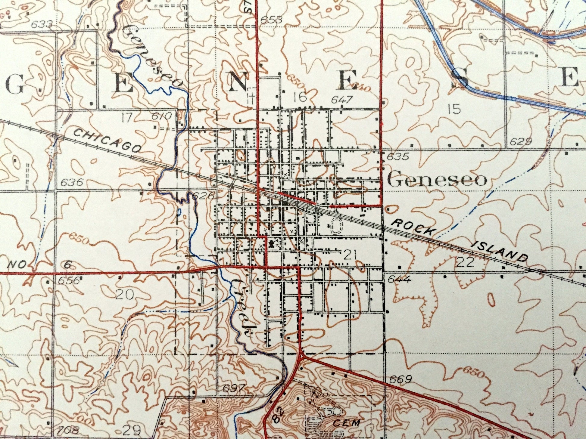 Beautiful, antique map of Geneseo, Cambridge, Atkinson, Illinois and surrounding area on the Green River. This is an authentic 1934 print from the U.S. Geological Survey and NOT a computer reproduction.