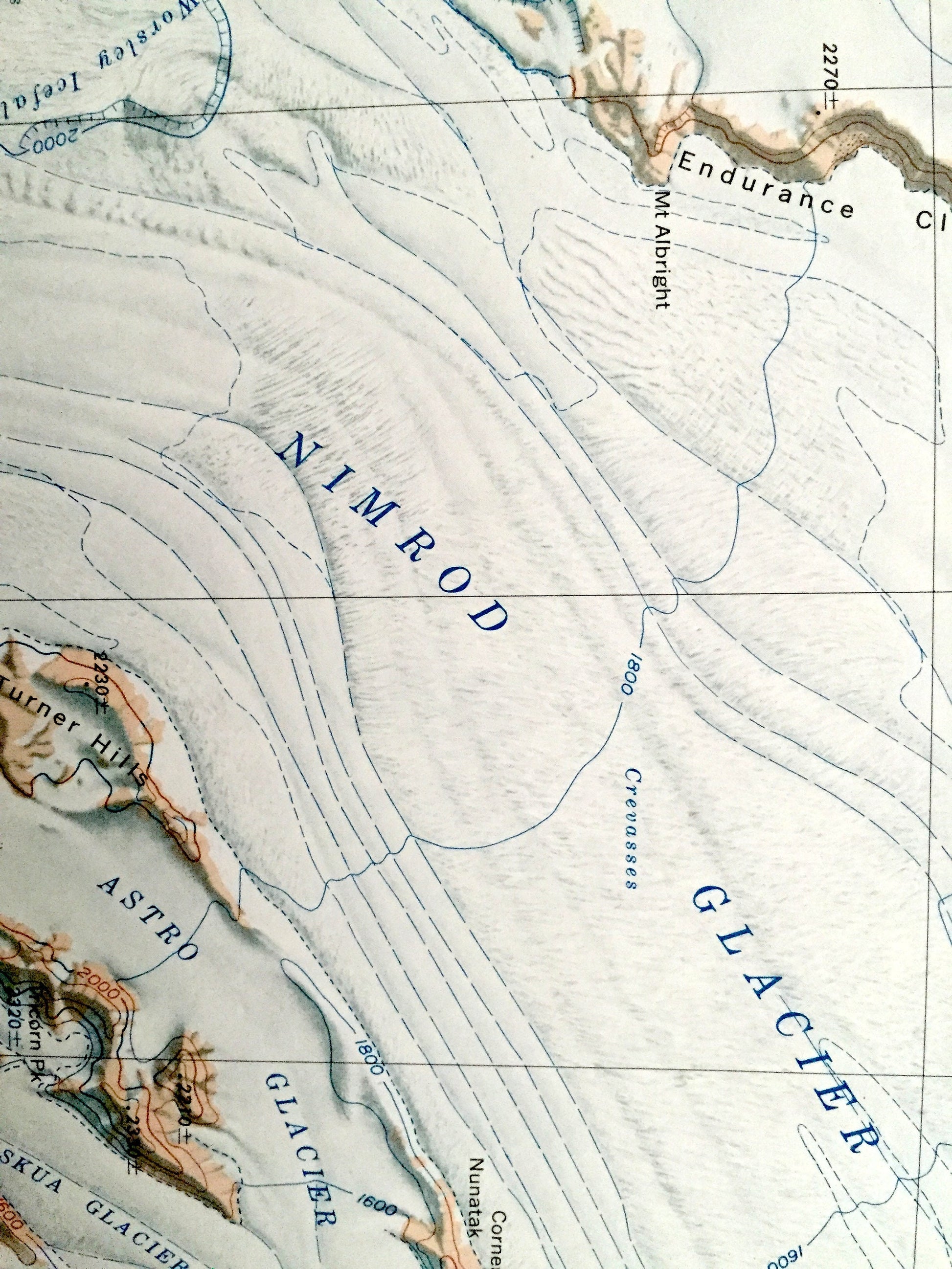 Points of Interest: Geologists Range, Nimrod Glacier, Lucy Glacier, McKay Cliffs, Boucot Plateau, Endurance Cliffs, Astro Glacier, Skua Glacier, Wellman Cliffs, The Slot, Quest Cliffs, Mt. Fyfe, Mt. Ronca, Mt. Summerson, Mt. Albright, Vogt Peak, Arrowhead Nunatak, Mt. Ester, Davis Knoll, Mt. Macpherson, Mt. Csejtey, Mt. Hayter and many more mountains, glaciers, inlets, promontories, crevasses, névés, massifs and bays.