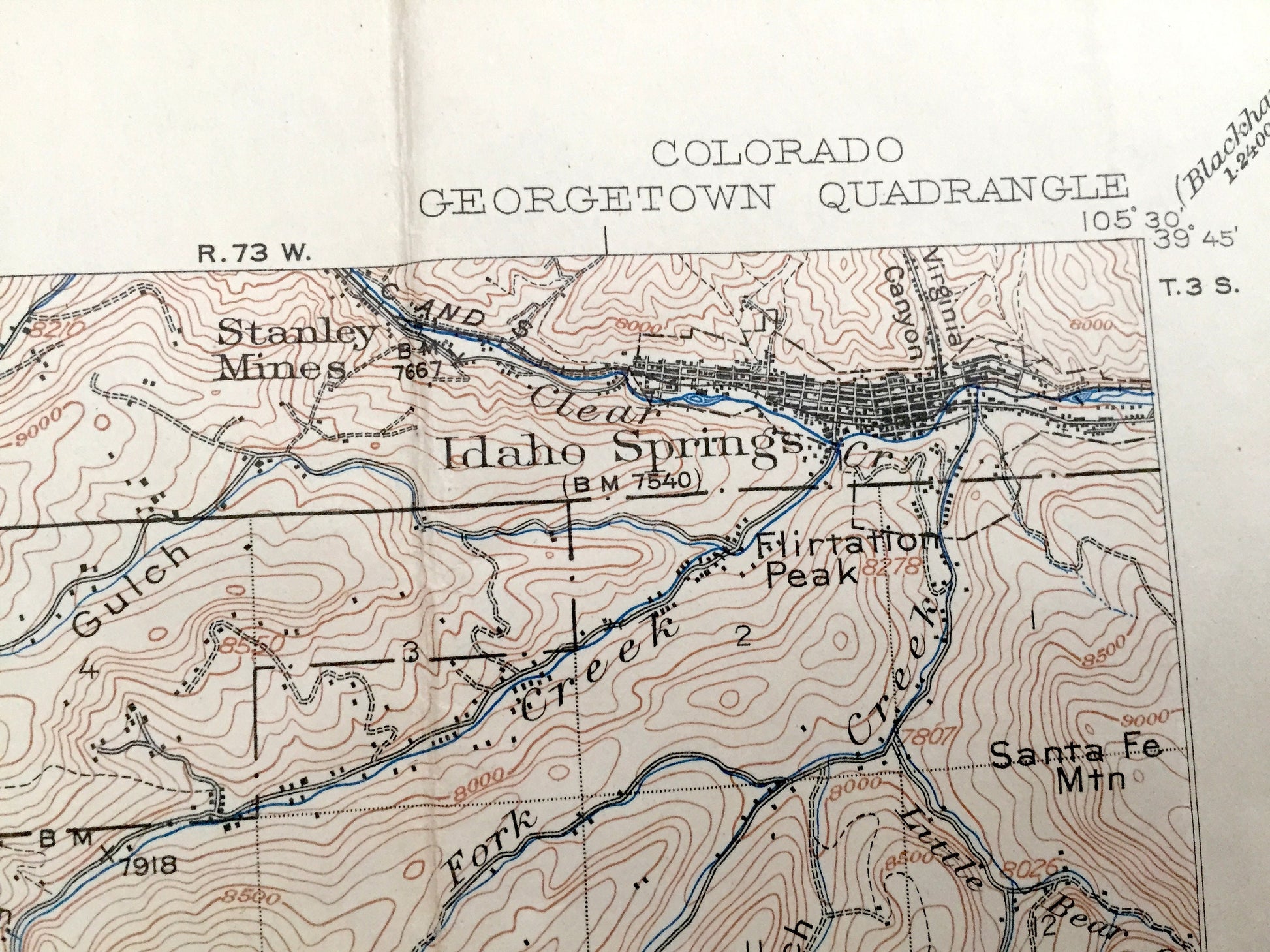 Beautiful, antique map of Georgetown, Colorado and surrounding Clear Creek and Park County area. This is an authentic 1905 edition, 1950 print from the U.S. Geological Survey and NOT a computer reprint.