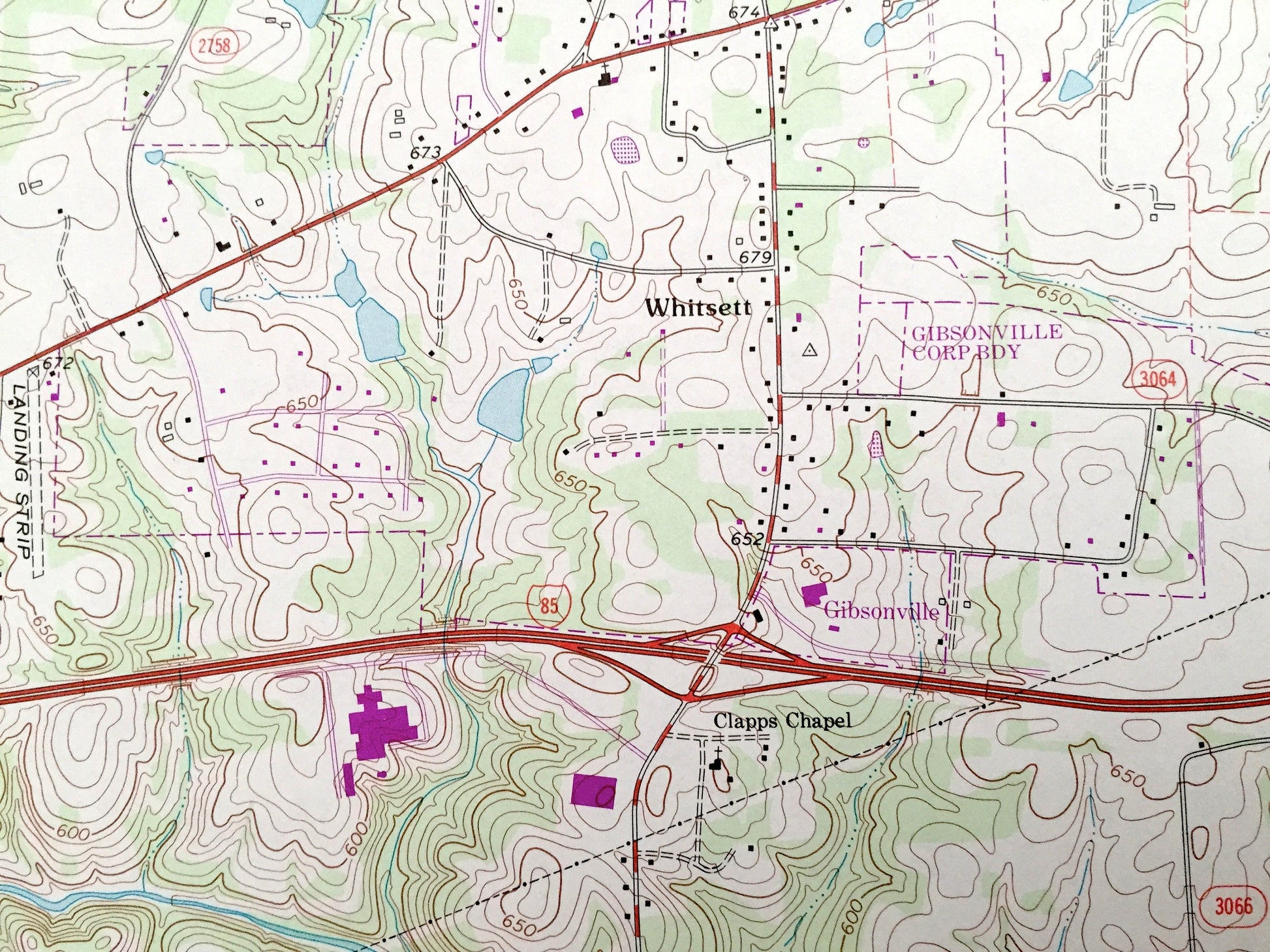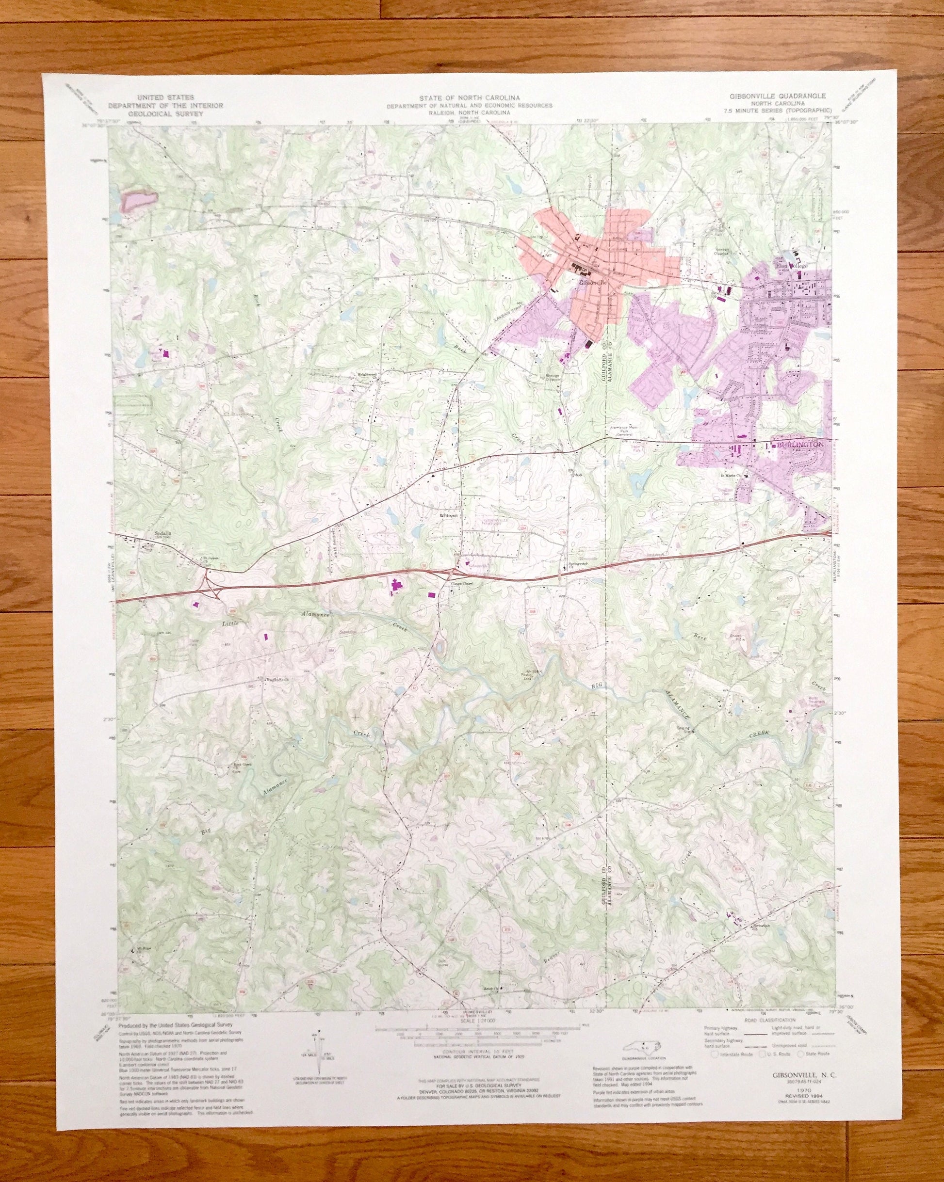 Beautiful, antique map of Gibsonville, North Carolina and surrounding Alamance & Guilford County areas. This is an authentic 1970 edition, 1994 print from the U.S. Geological Survey and is NOT a computer reproduction.