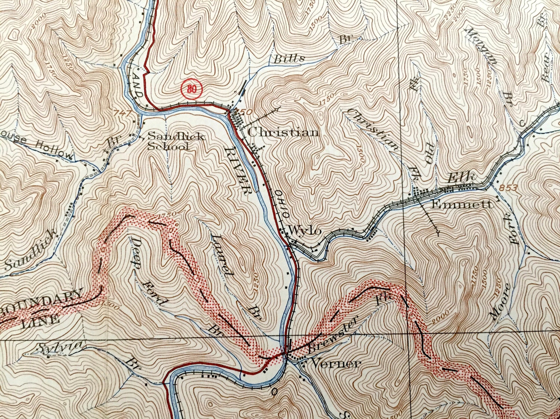 See what West Virginia looked like over 95 years ago. Lots of intricate details and geological contours. Map even has little squares for every house that existed at the time. The USGS cartographers were very thorough back then! On the back is a description of topographic symbols and map guide.