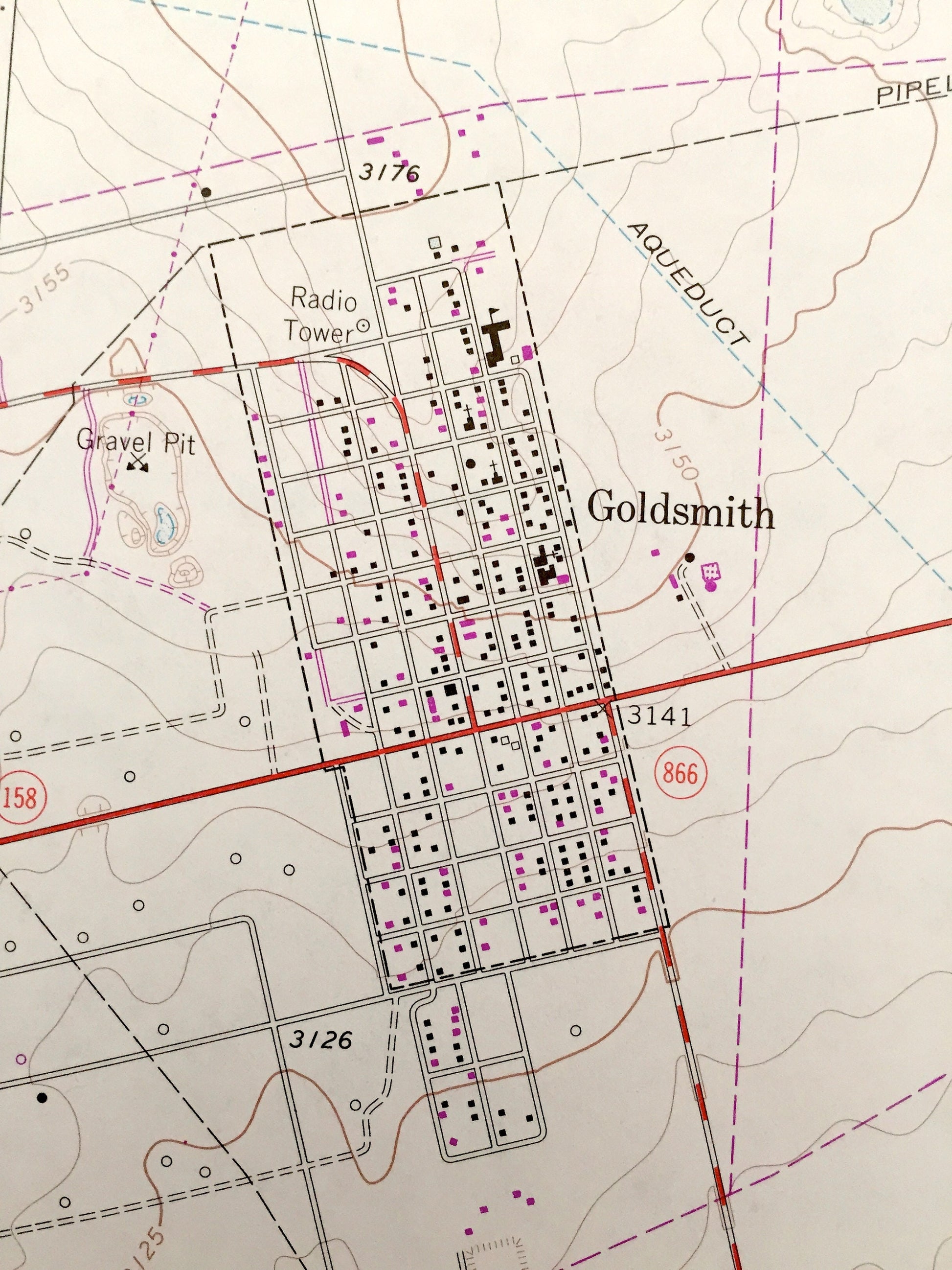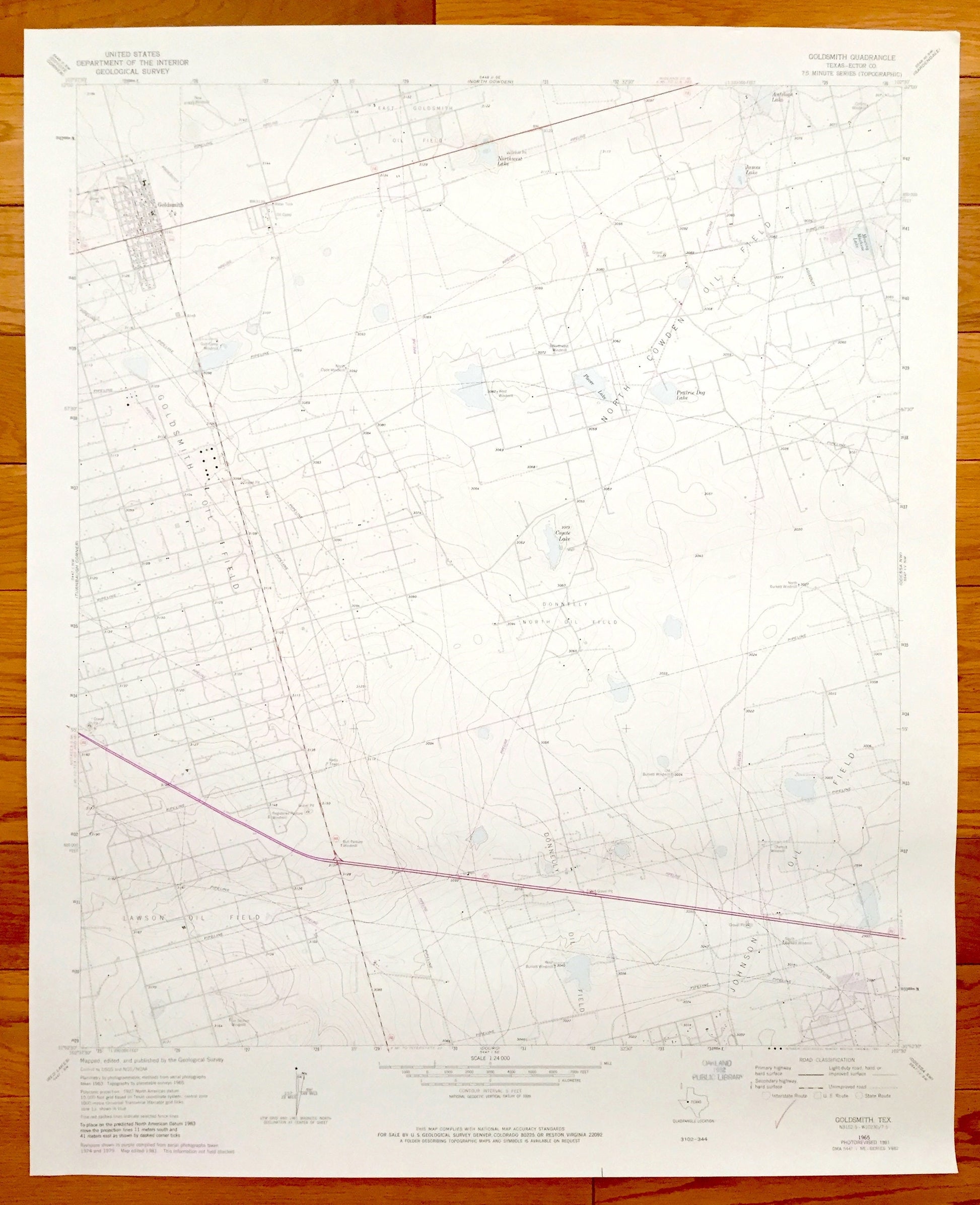 Beautiful, antique map of Goldsmith, Texas. This is an authentic 1965 edition, 1981 print from the U.S. Geological Survey and NOT a computer reproduction.