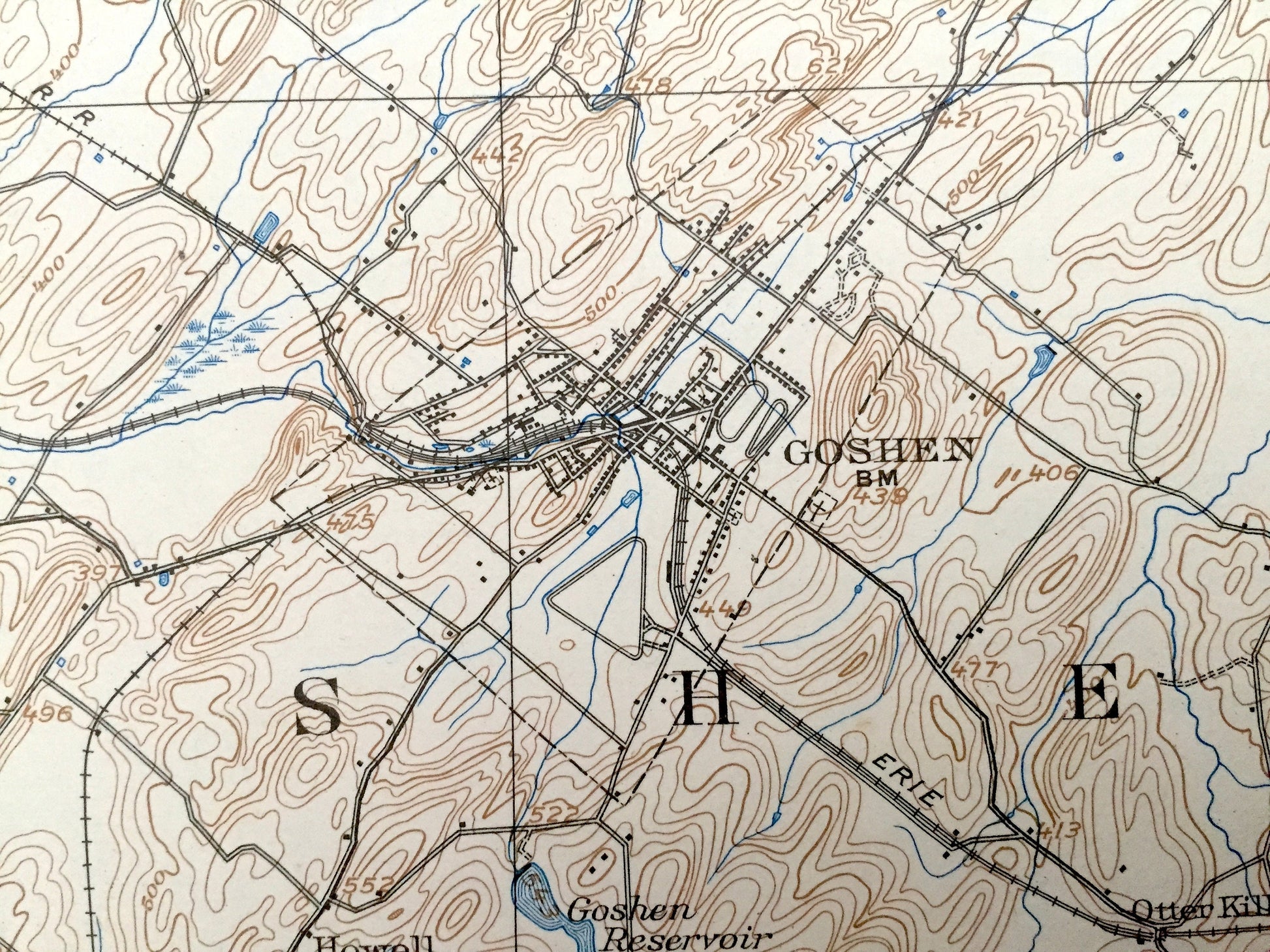 Beautiful, antique map of the Goshen, New York and surrounding Orange County area. This is an authentic 1908 edition, 1938 print from the U.S. Geological Survey and NOT a computer reproduction.