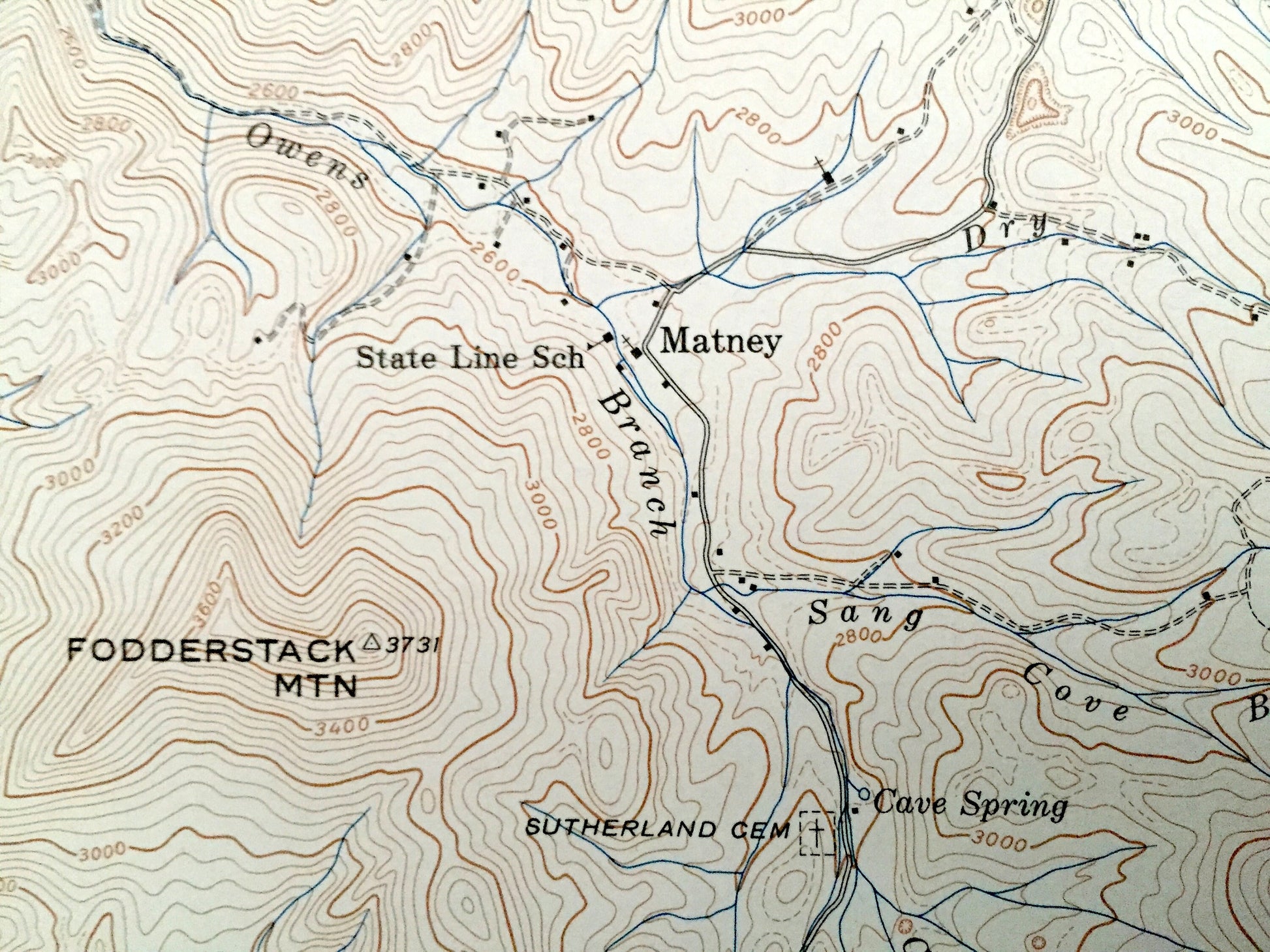 Beautiful, antique map of where Tennessee, North Carolina and Virginia meet, including surrounding Washington, Grayson, Johnson & Ashe County area. This is an authentic 1938 print from the U.S. Geological Survey and NOT a computer reproduction.