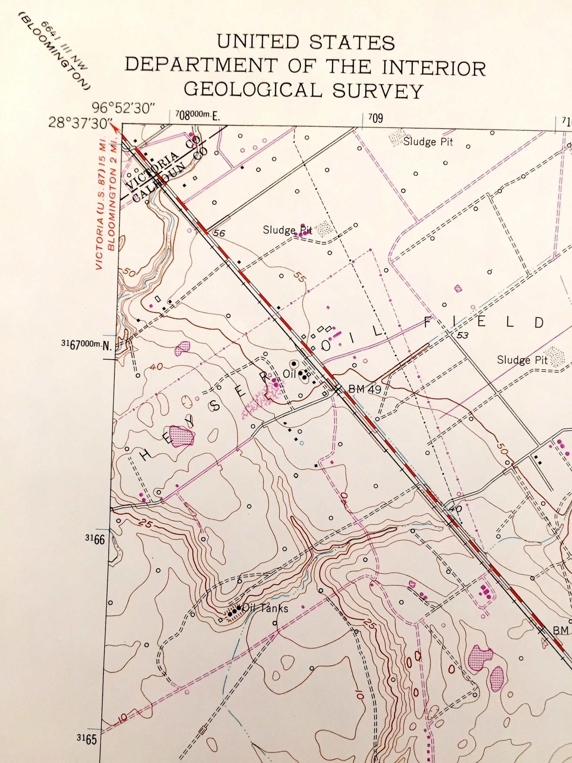 See what Victoria & Calhoun Counties of Texas looked like 65 years ago. Lots of intricate details and geological contours. Map even has little squares for every house that existed at the time. The USGS cartographers were very thorough back then!