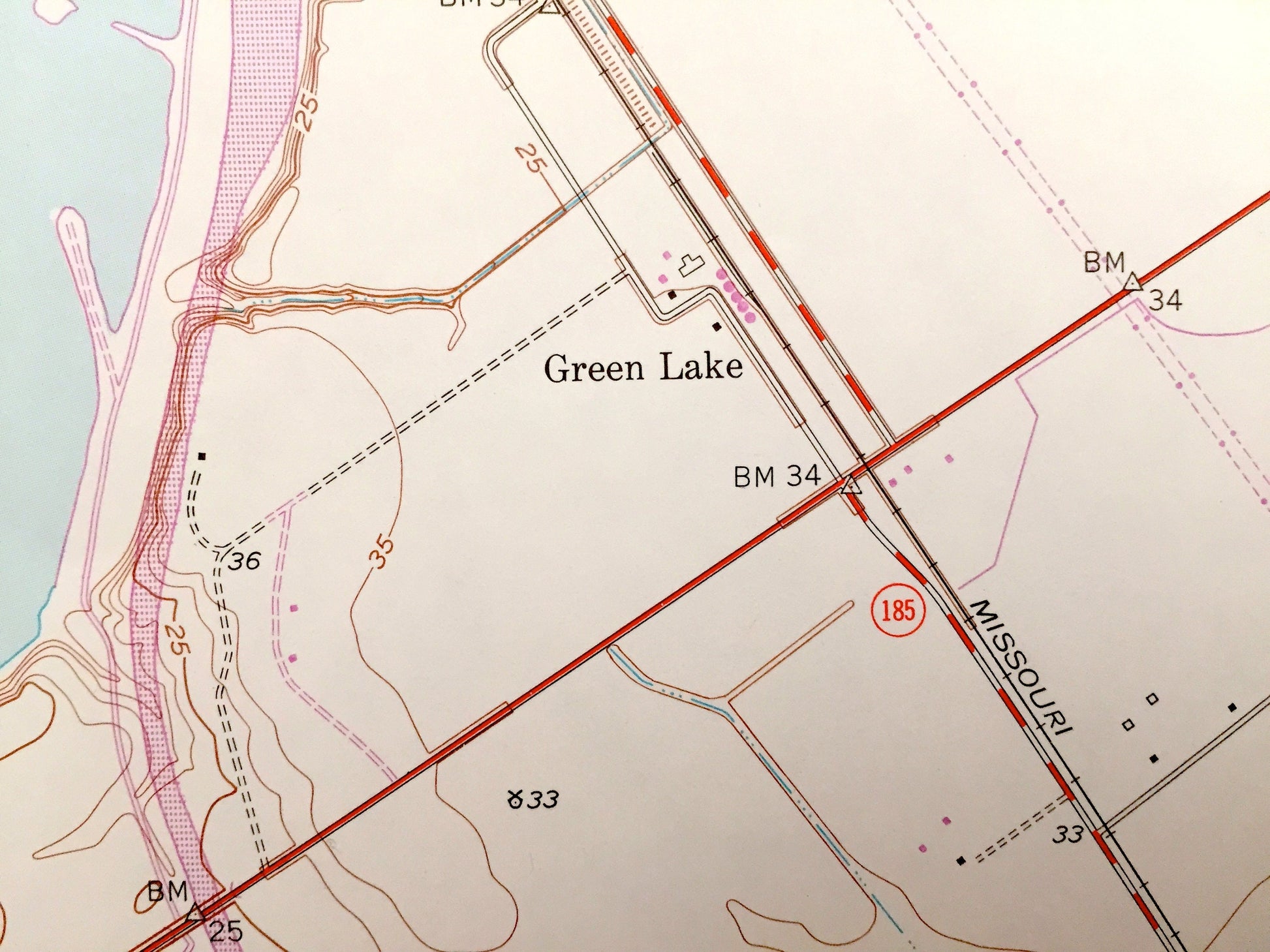 Points of Interest: Green Lake, Jones Bayou, Goff Bayou, Missouri Pacific Railroad, Regional Oil Wells and Windmills, Heyser Oil Field, Green Lake Ranch Airstrip, and many more roads, churches, and houses.