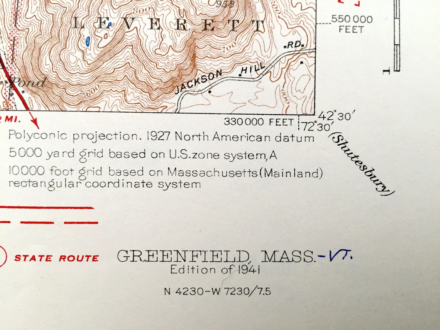 Beautiful, antique map of Greenfield, Montague & Deerfield Massachusetts. This is an authentic edition of 1941 print from the U.S. Geological Survey and NOT a computer reproduction.