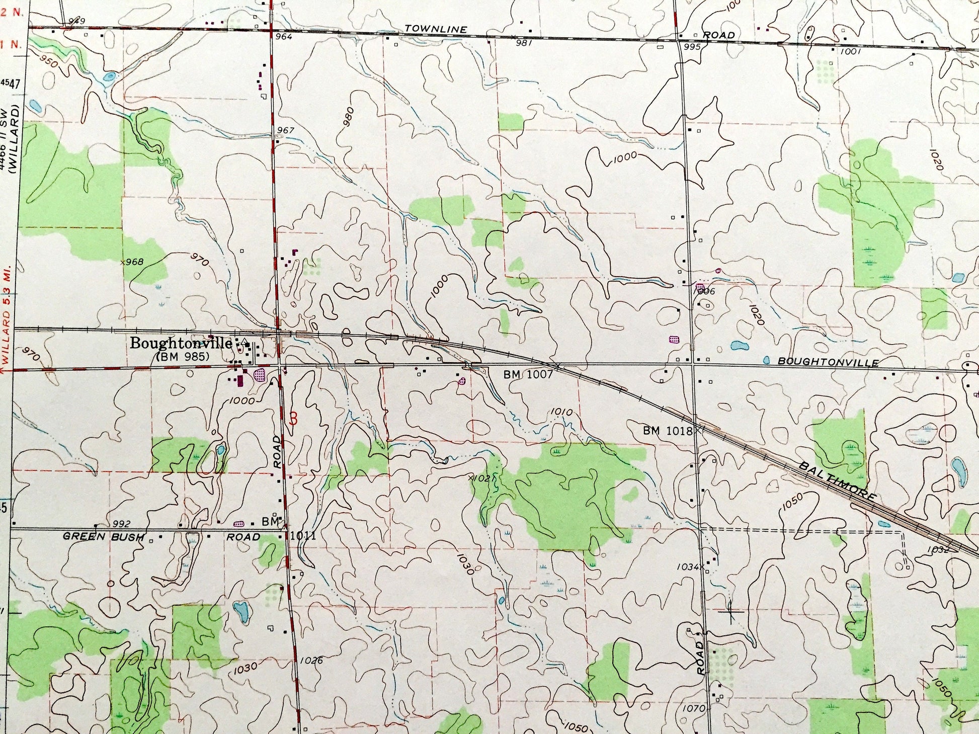 Beautiful, antique map of Greenwich, Ohio and surrounding Huron County area. This is an authentic 1960 edition, 1990 print from the U.S. Geological Survey and NOT a computer reproduction.