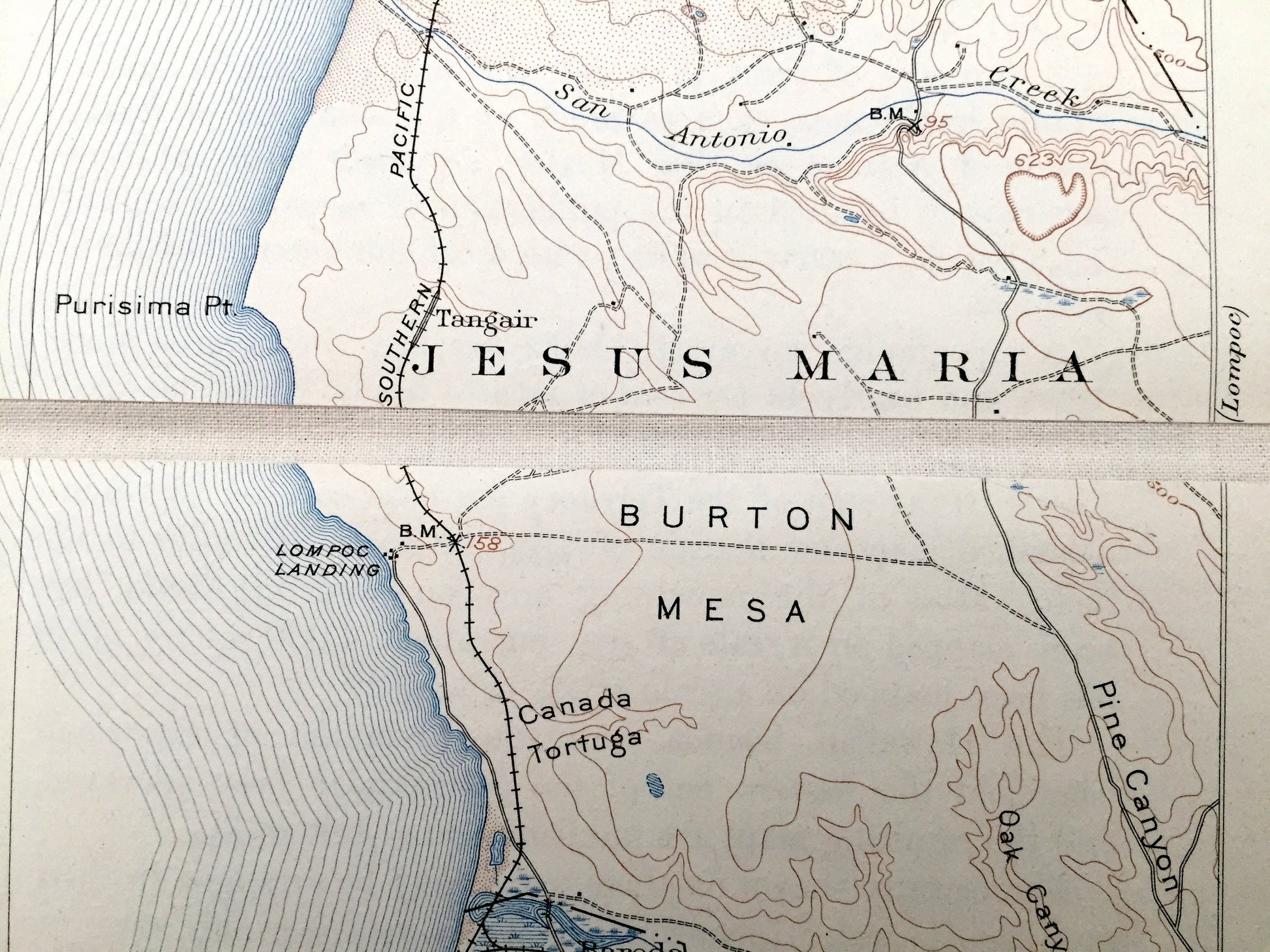 Points of Interest: California Coast, Santa Barbara County, San Luis Obispo County, Guadalupe Lake, Santa Maria Valley, Casmalia Hills, San Antonio Creek, Santa Ynez River, Canada Honda Creek, Buron Mesa, Point Sal Ridge, Santa Ynez Mountains, Canada Tortuga, Seal Rock, Lions Head, Purisima Point, Lompoc Landing, Point Pedernales, Point Arguello, Rocky Point, The Espada, Southern Pacific Railroad, and lots more mountains, canyons, rivers, small towns and train tracks.