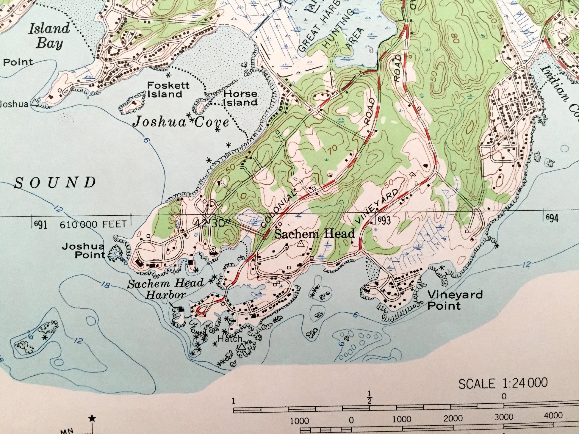See what Guilford and New Haven County looked like more than 65 years ago. Lots of intricate details and geological contours. Map even has little squares for every house that existed at the time. The USGS cartographers were very thorough back then! On the back is a description of topographic symbols and map guide.