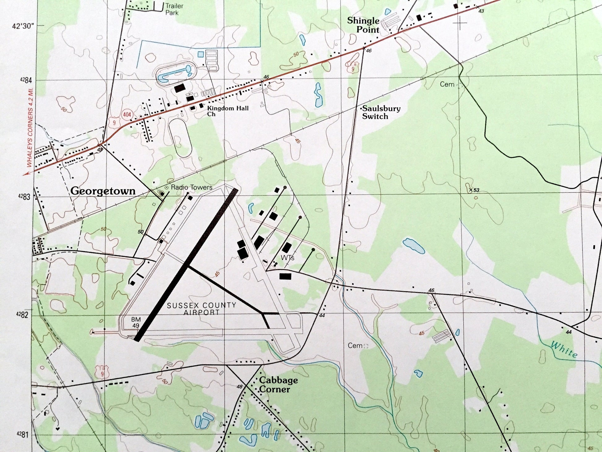 Points of Interest: Sussex County Airport, Georgetown Raceway, Sussex Correctional Institution, Hunters Millpond, Morris Millpond, Ingram Branch, Beaverdam Creek, Peterkins Branch, Round Pole Branch, and many more hills, streams, ponds, houses, schools, railroads, churches and roads.