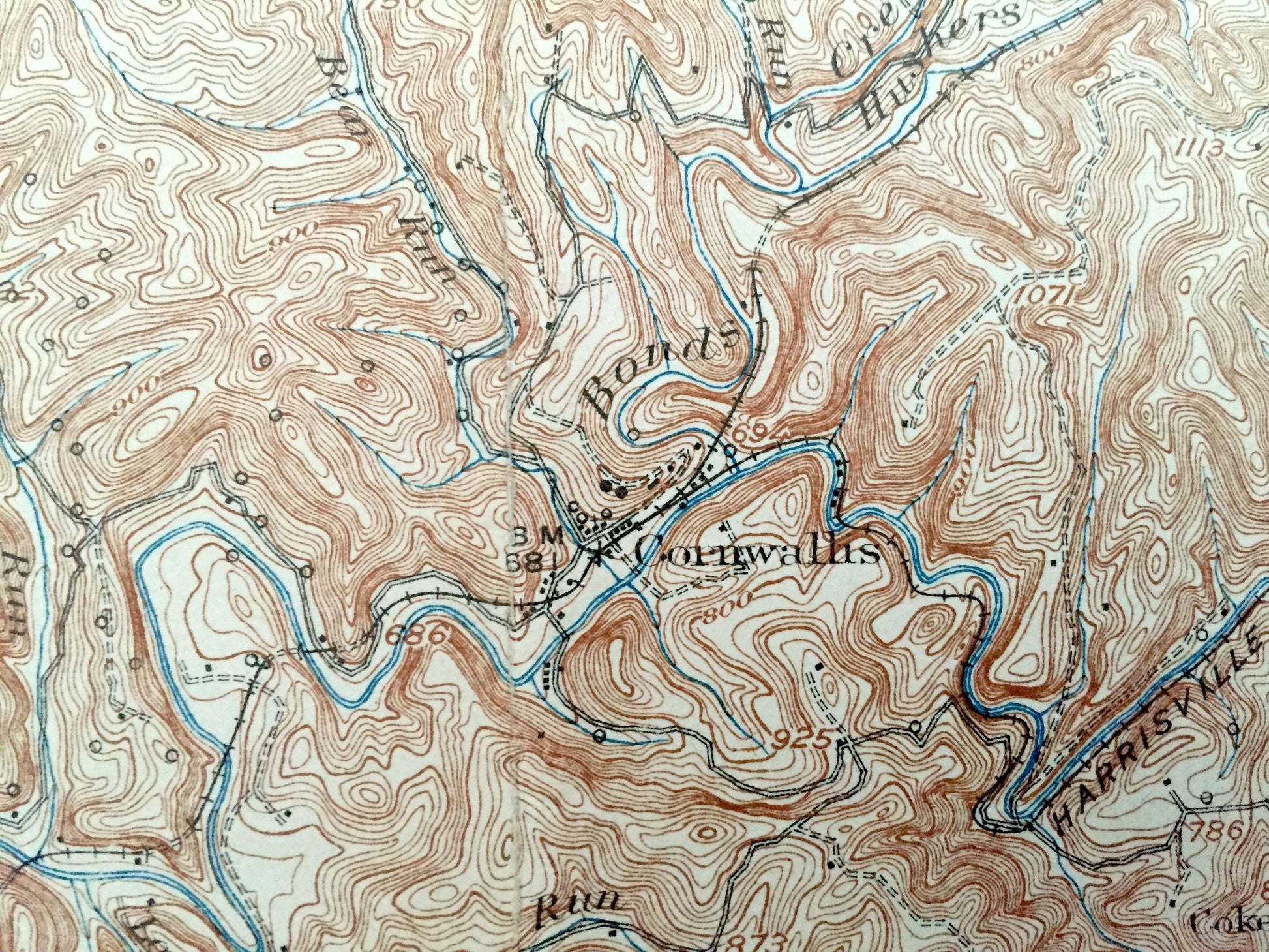 See what West Virginia looked like over 90 years ago. Lots of intricate details and geological contours. Map even has little squares for every house that existed at the time. The USGS cartographers were very thorough back then! On the back is a description of topographic symbols and map guide.