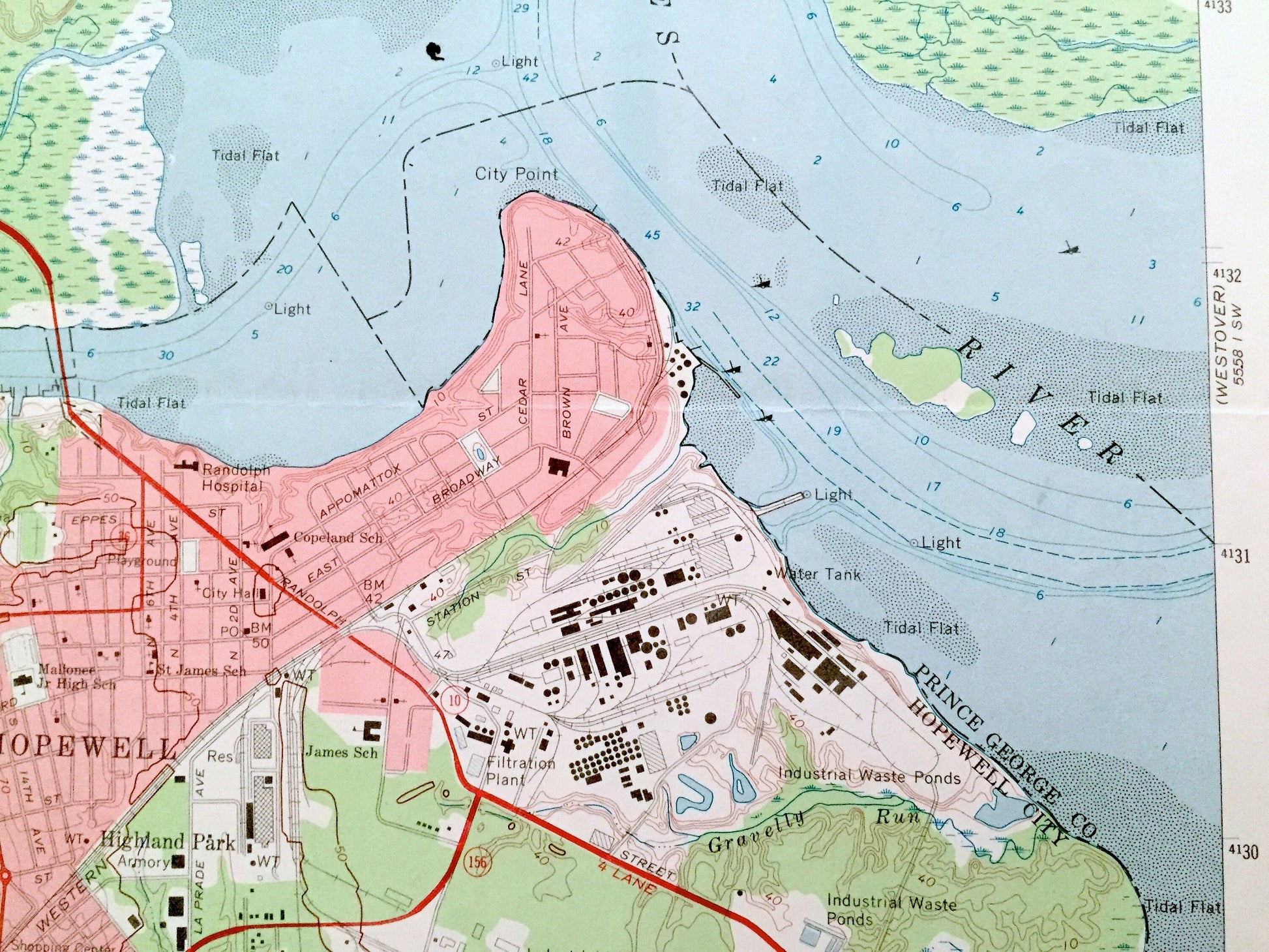 Points of Interest: Charles City County, Prince George County, Chesterfield County, Henrico County, Fort Lee US Army Military Reservation, James River, Appomattox River, Bailey Creek, Curles Neck, Turkey Island, Presque Isle Swamp, Curles Neck Swamp, Farrar Island, Eppes Island, Cattail Creek, Colonial Heights City and many more hills, streams, ponds, houses, schools, churches and roads.