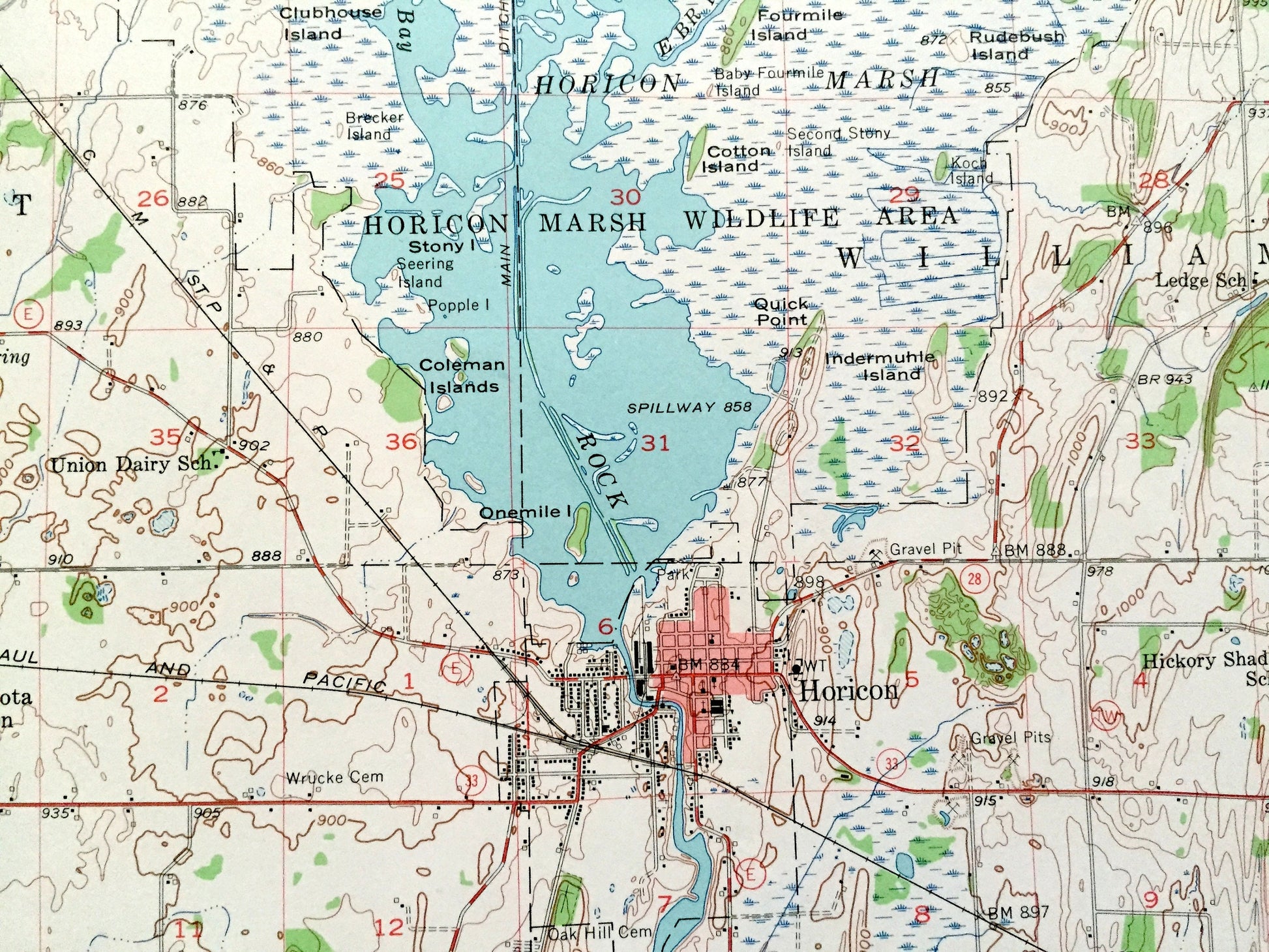 Points of Interest: Dodge County, Sinissippi Lake, Horicon Marsh, Rock River, Horicon Marsh Wildlife Area, Mill Pond, and lots more hills, creeks, towns, schools, churches, roads and train tracks.