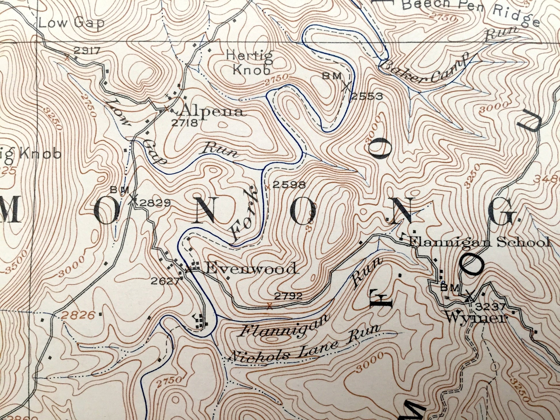 See what West Virginia looked like over 95 years ago. Lots of intricate details and geological contours. Map even has little squares for every house that existed at the time. The USGS cartographers were very thorough back then! On the back is a description of topographic symbols and map guide.