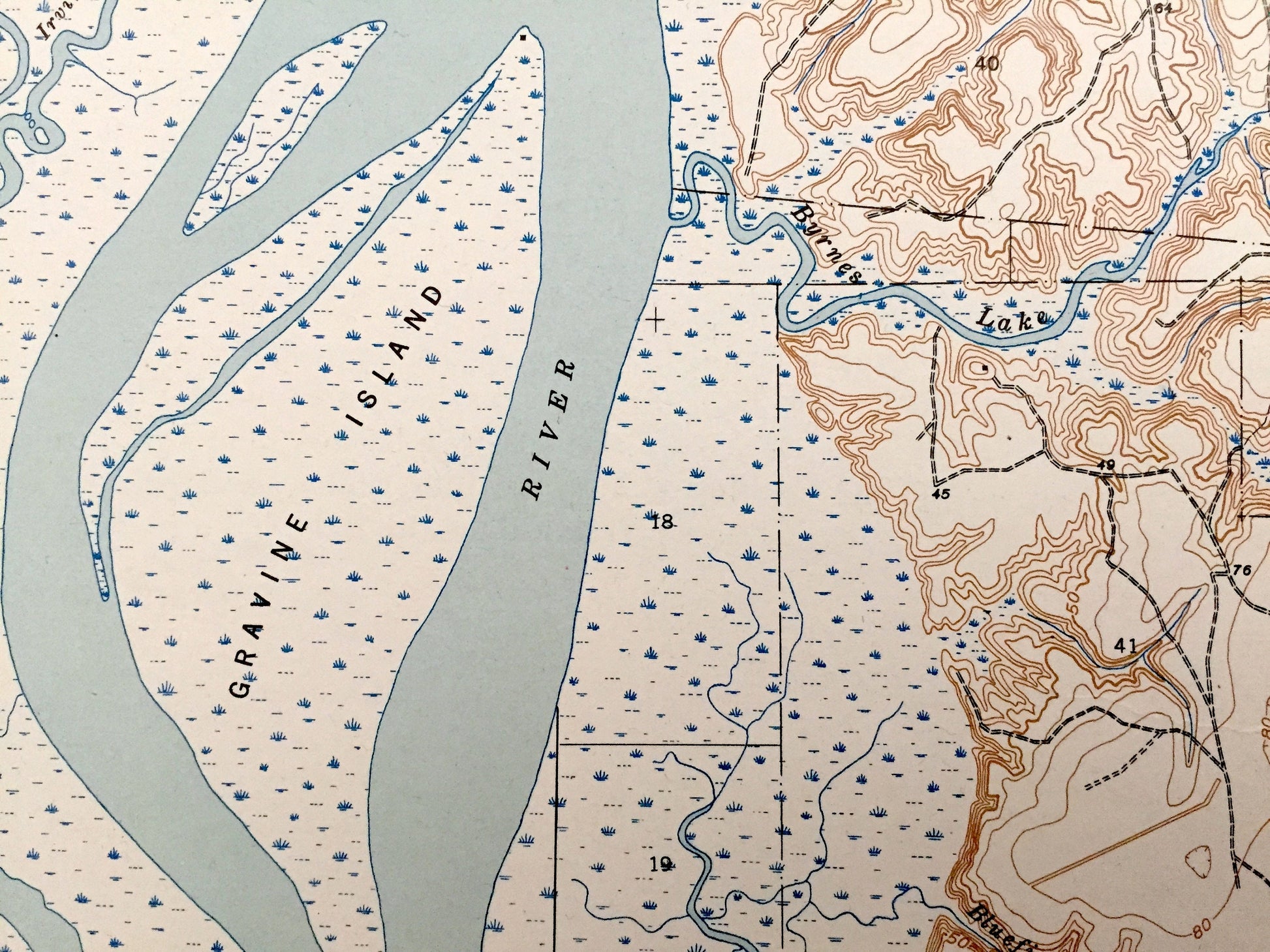 Points of Interest: Tensaw River, Twelvemile Island, Mobile River, Big Lizard Creek, Raft River, Chuckfee Bay, Big Bayou Canot, Grand Bay, Big Briar Creek, Gravine Island, Louisville & Nashville Railroad, Stony Hill, Alligator Bayou, Hurricane Bayou, Oak Leaf Bayou, and lots more hills, mountains, creeks, towns, roads and train tracks.