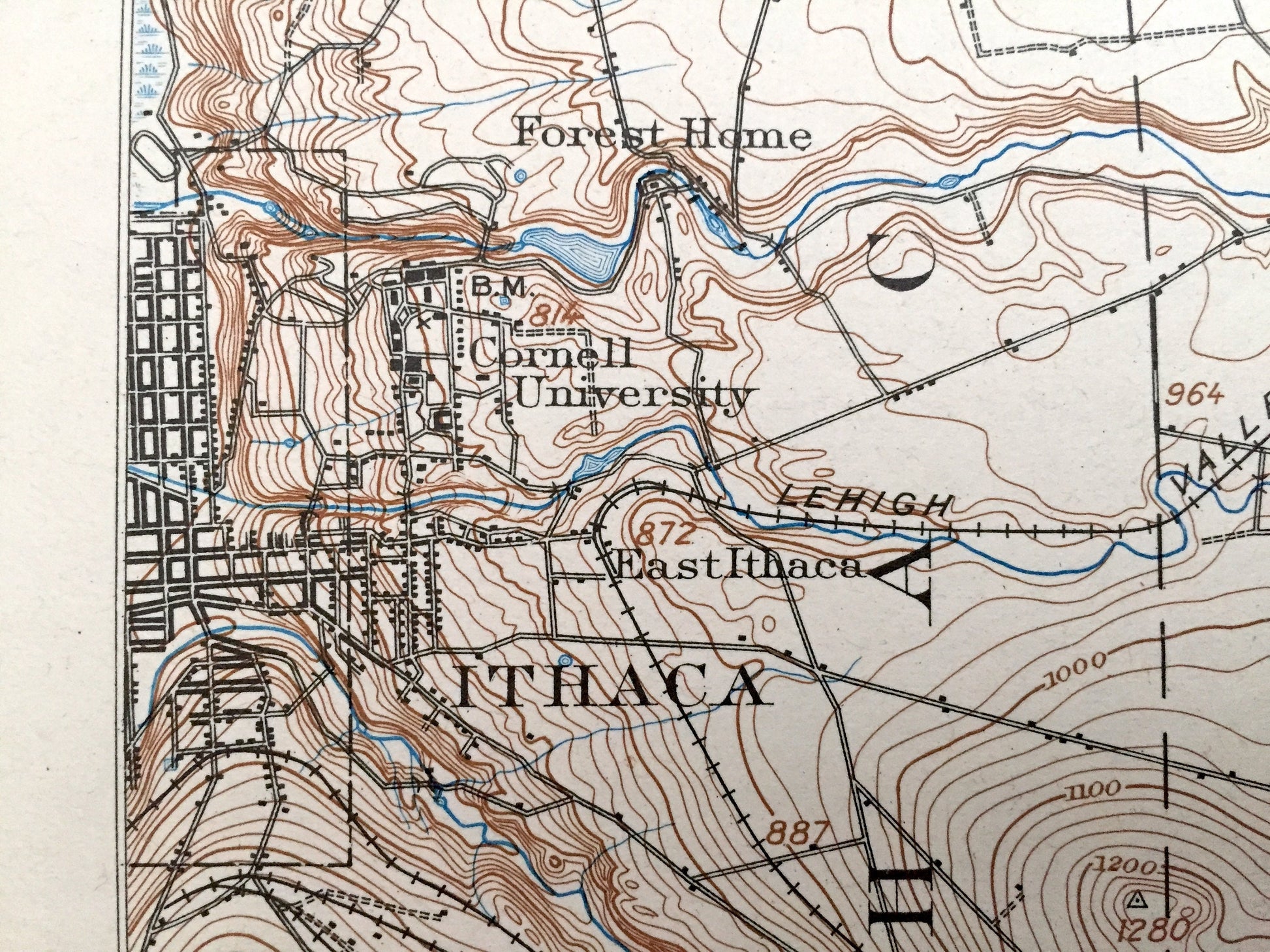Antique Ithaca, New York 1900 US Geological Survey Topographic Map – Dryden, Lansing, Harford, Richford, Caroline, Candor, Spencer, Danby NY
