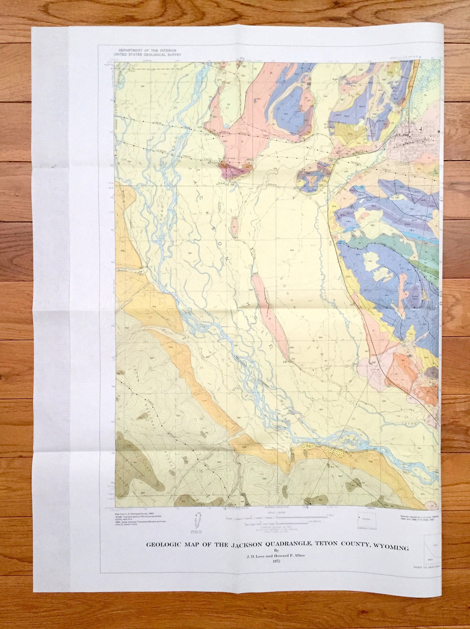 See what Teton County and Jackson looked like almost 50 years ago. Lots of intricate details and geological contours. Map even has little squares for every house that existed at the time. The cartographers were very thorough back then! This map is a very rare Ground Stability Map by J.D. Love & Howard F. Albee for the United States Geological Survey