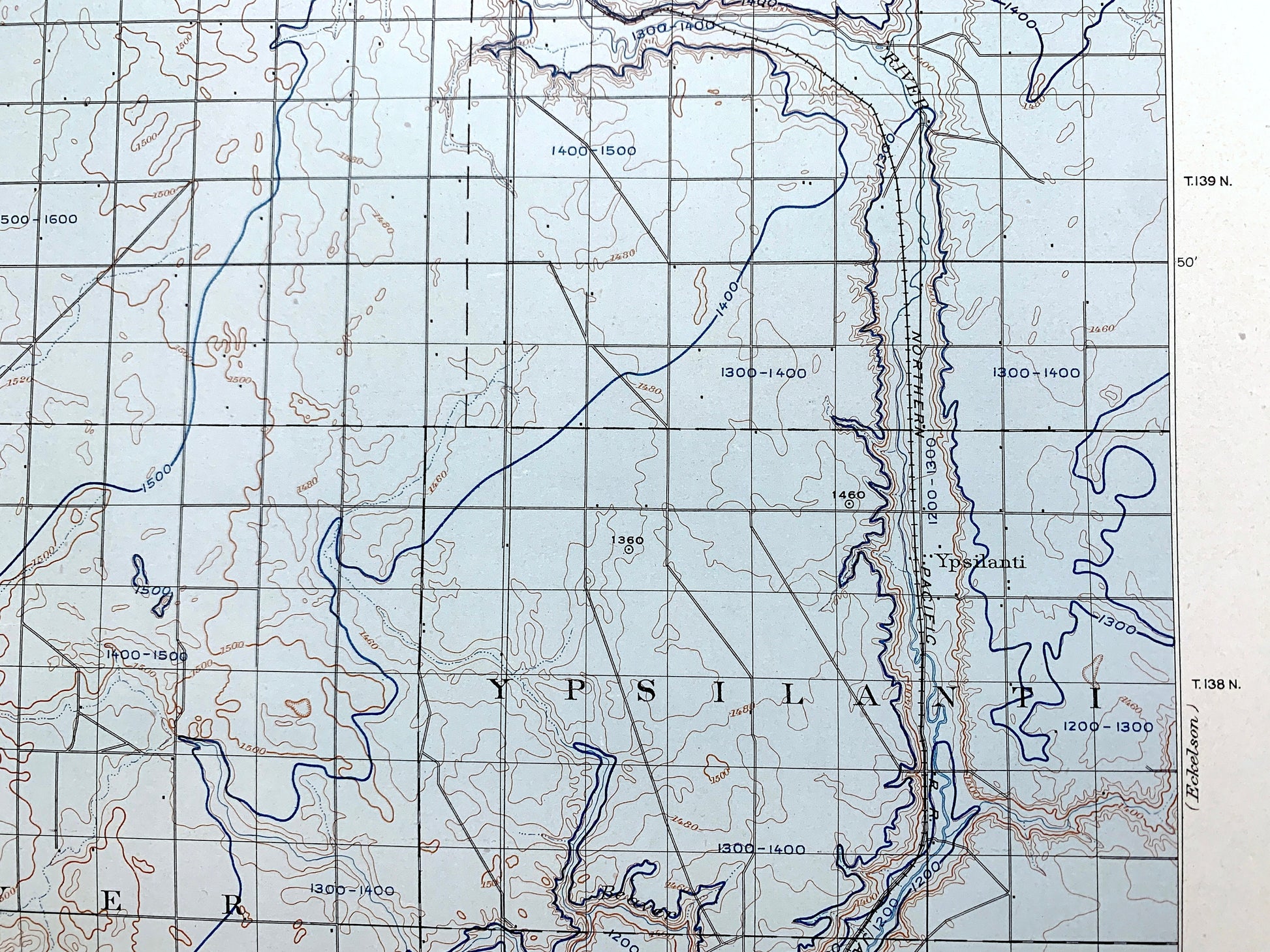 See what North Dakota looked like over 110 years ago. Lots of intricate details and geological contours. Map has lots of intricate details and geological contours—even little squares for every house that existed at the time. The USGS cartographers were very thorough back then! This is also one of the rare maps that has the map legend on the front.