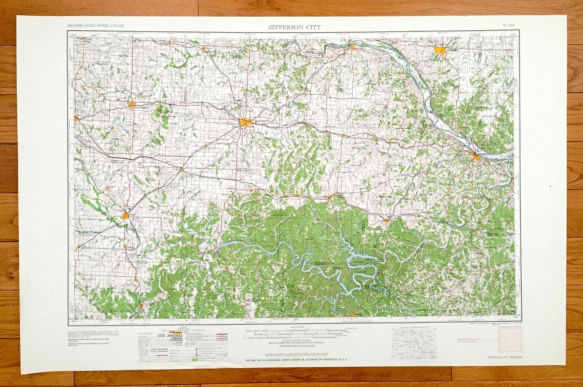 Antique Jefferson City, Missouri 1959 US Geological Survey Topographic Map – Columbia, Sedalia, Clinton, Warrensburg, Sweet Spring, Tipton