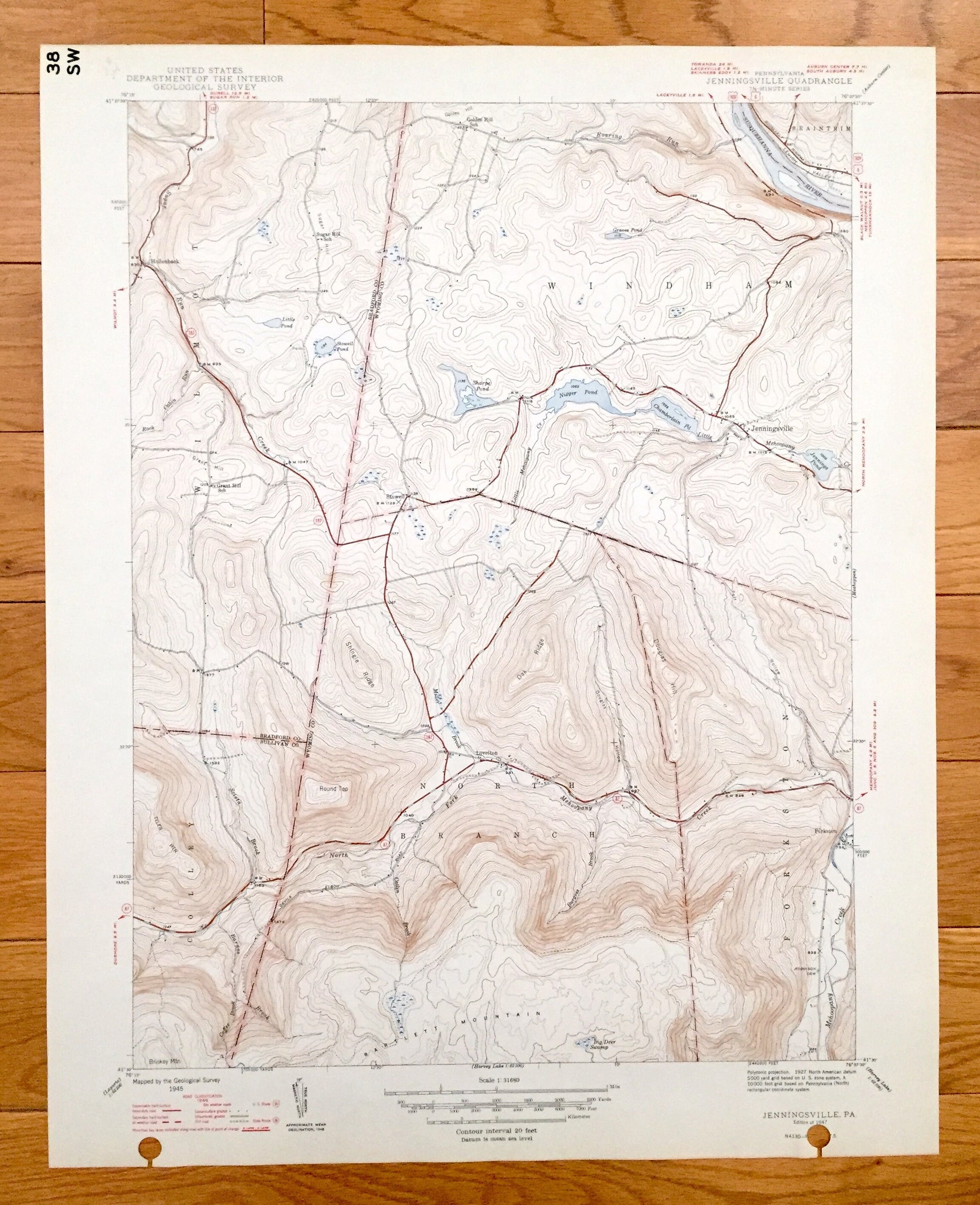See what Pennsylvania looked like over 70 years ago. Lots of intricate details and geological contours. Map even has little squares for every house that existed at the time. The USGS cartographers were very thorough back then! On the back is a description of topographic symbols and map guide.