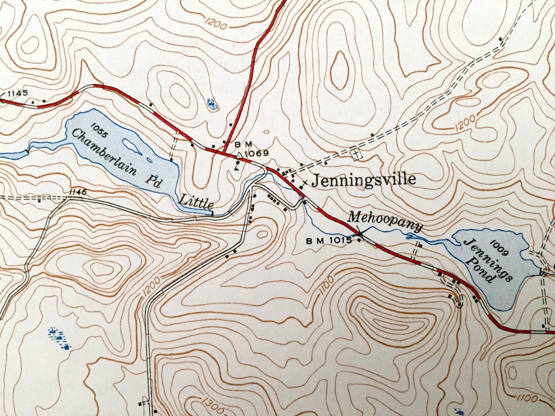 Beautiful, antique map of Jenningsville, Pennsylvania and surrounding Wyoming County, Bradford County and Sullivan County areas. This is an authentic 1947 print from the U.S. Geological Survey and NOT a computer reproduction.