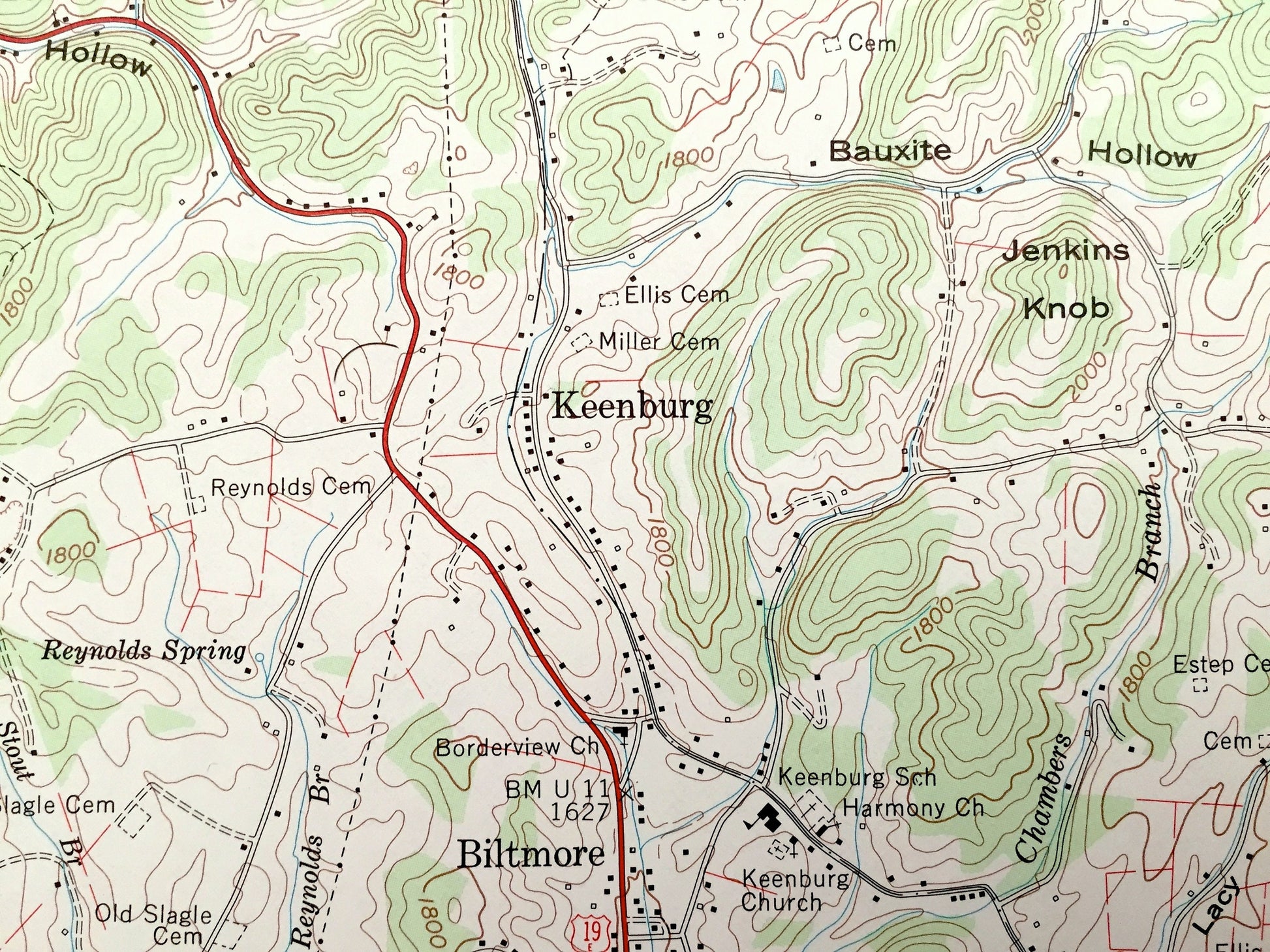 Beautiful, antique map of Keenburg, Tennessee and surrounding Carter & Sullivan County areas. This is an authentic 1960 edition, 1988 print from the U.S. Geological Survey and NOT a computer reproduction.