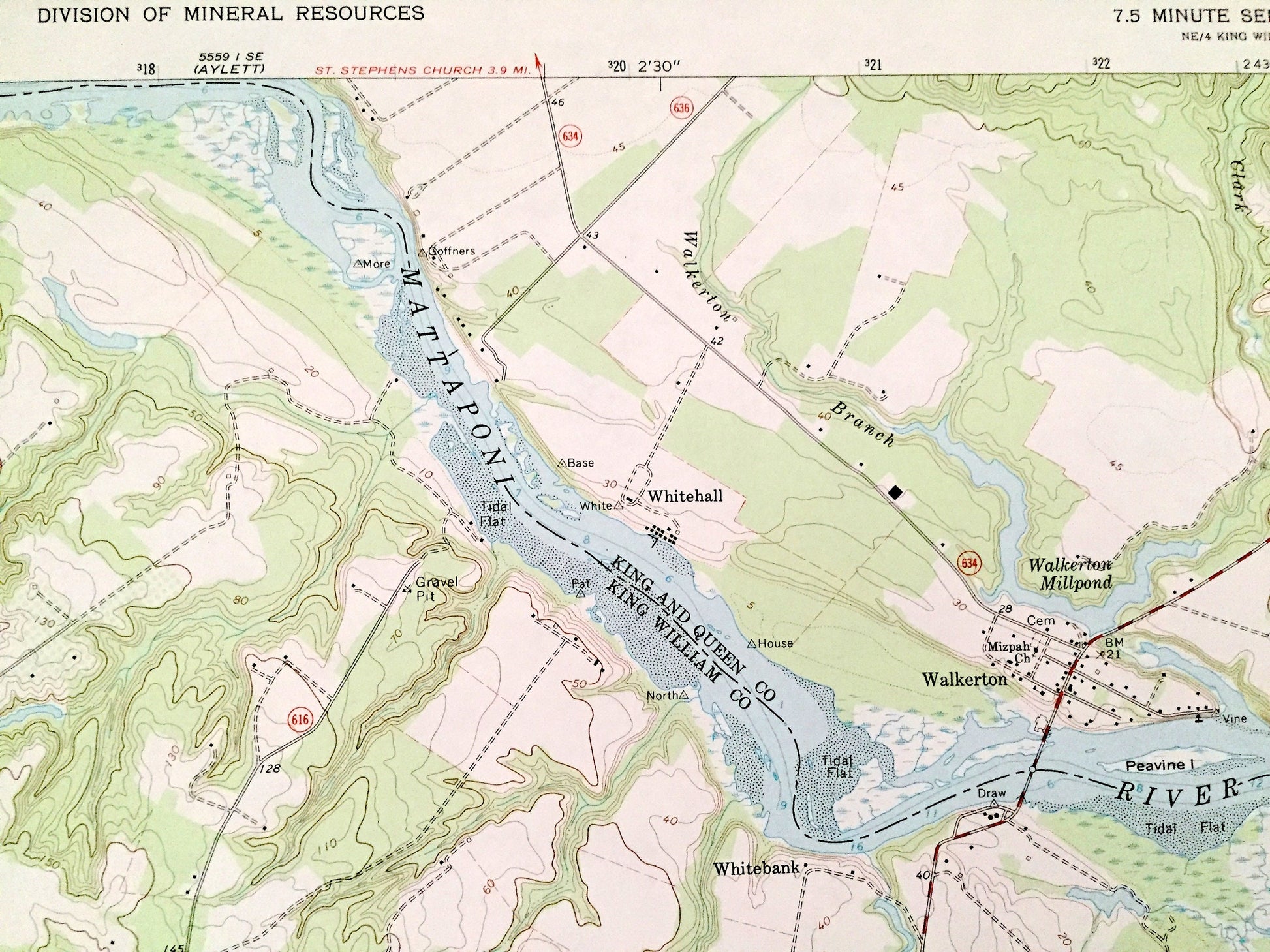 Points of Interest: King William County, King and Queen County, Hanover County, Mattaponi River, Pamunkey River, Walkerton Mill Pond, Roanes Wharf, Four Forks Inn, Acquinton Creek, Dawson Swamp, Mallory Creek, Broad Creek, Jacks Creek, Clark Swamp, Piping Tree Ferry, and many more hills, creeks, ponds, houses, schools, churches and roads.