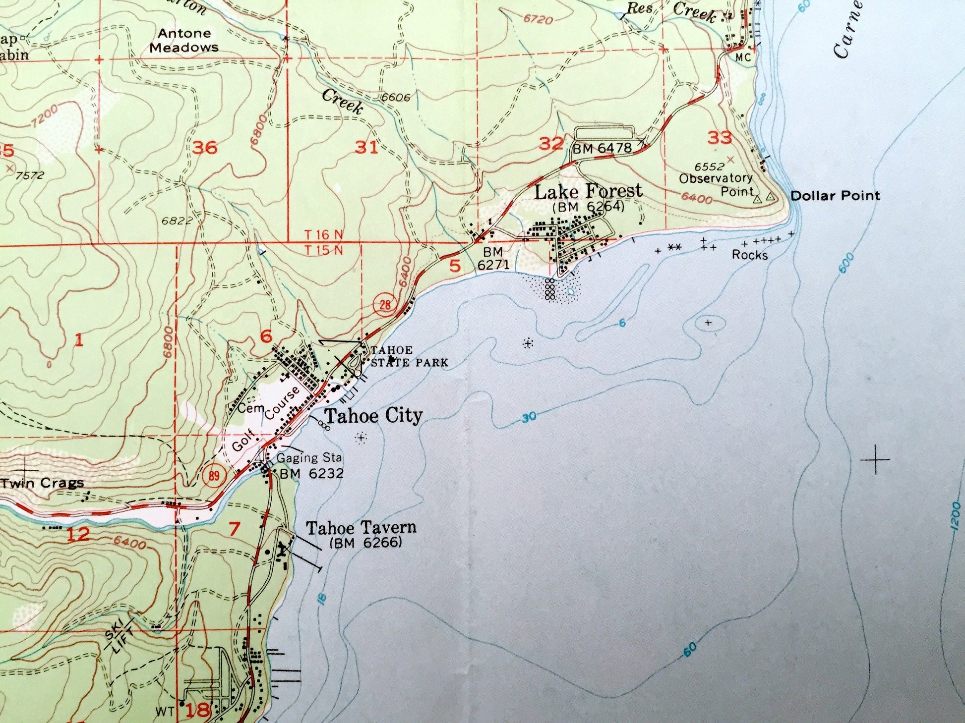 Points of Interest: Lake Tahoe, Tahoe National Forest, Eldorado National Forest, Agate Bay, Carnelian Bay, McKinney Bay, Meeks Bay, Sugar Pine Point, Rubicon Bay, Truckee River, McKinney Creek, Rubicon River, Mt Watson, Squaw Valley, Paige Meadow, Ward Peak, and many more small towns, springs, train tracks, valleys, hills and creeks.