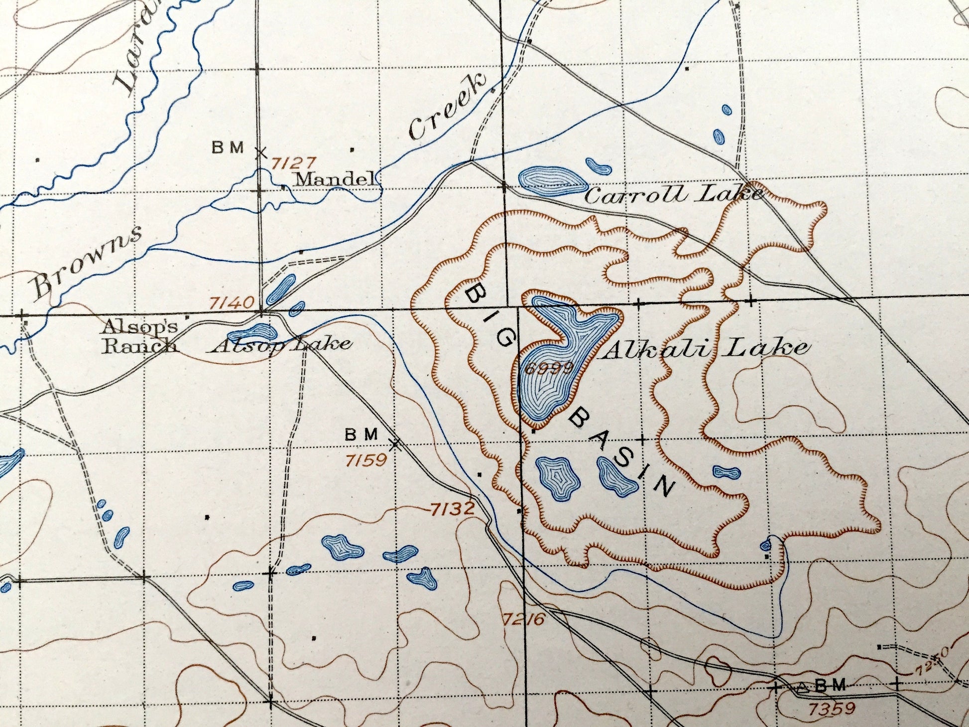 Points of Interest: Albany County, Big Basin, James Lake, Carroll Lake, Alkali Lake, Hutton Lake, Laramie River, Medicine Bow National Forest, Jelm Mountain, Red Mountain, Boulder Ridge, The Big Hollow, Red Buttes, Sawmill Canyon, Browns Creek and lots more creeks, mountains, canyons, ranges, lakes, ranches, houses and roads.