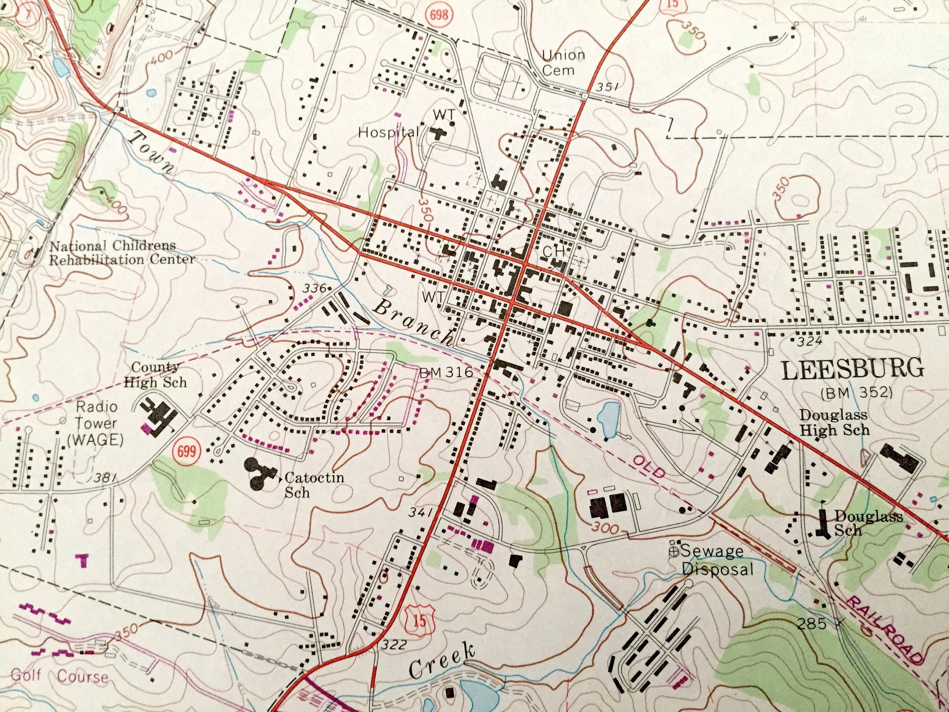 Beautiful, antique map of Leesburg, Virginia and surrounding Maryland and Loudoun County area. This is an authentic 1968 edition, 1973 print from the U.S. Geological Survey and NOT a computer reproduction.