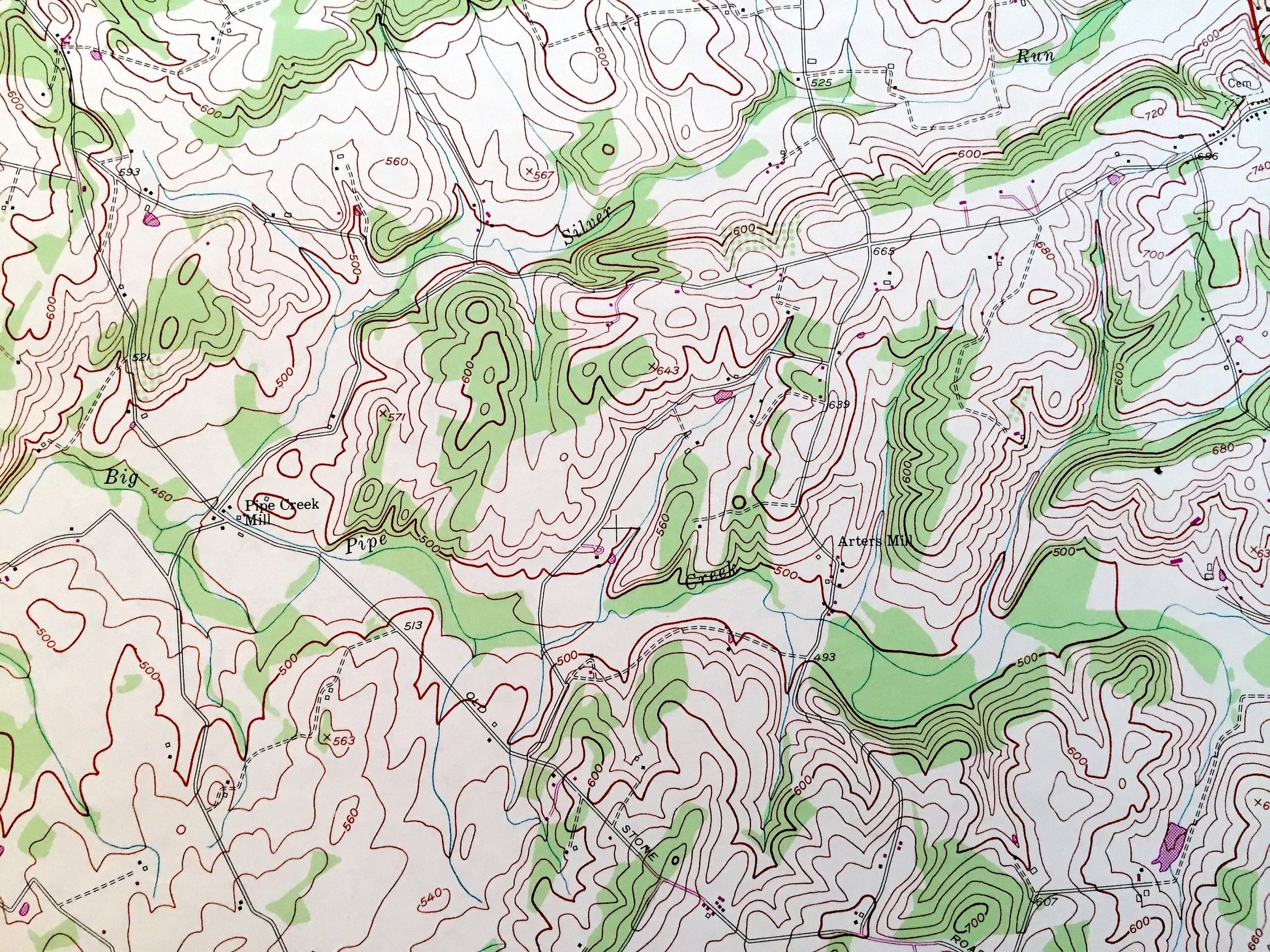 Points of Interest: Mason and Dixon Line, Piney Creek, Silver Run, Big Pipe Creek, Bear Branch, and many more hills, streams, ponds, houses, schools, railroads, churches and roads.