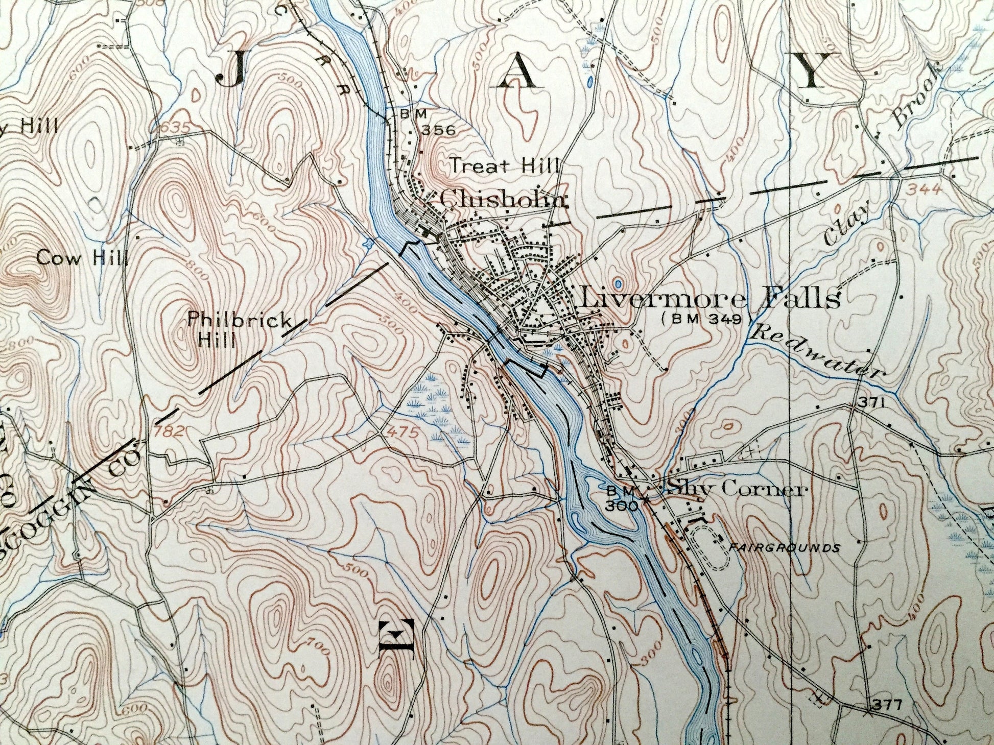 Antique Livermore Falls, Maine 1910 US Geological Survey Topographic Map – Androscoggin River & Lake, Wayne, Leeds, Fayette, Mount Vernon ME