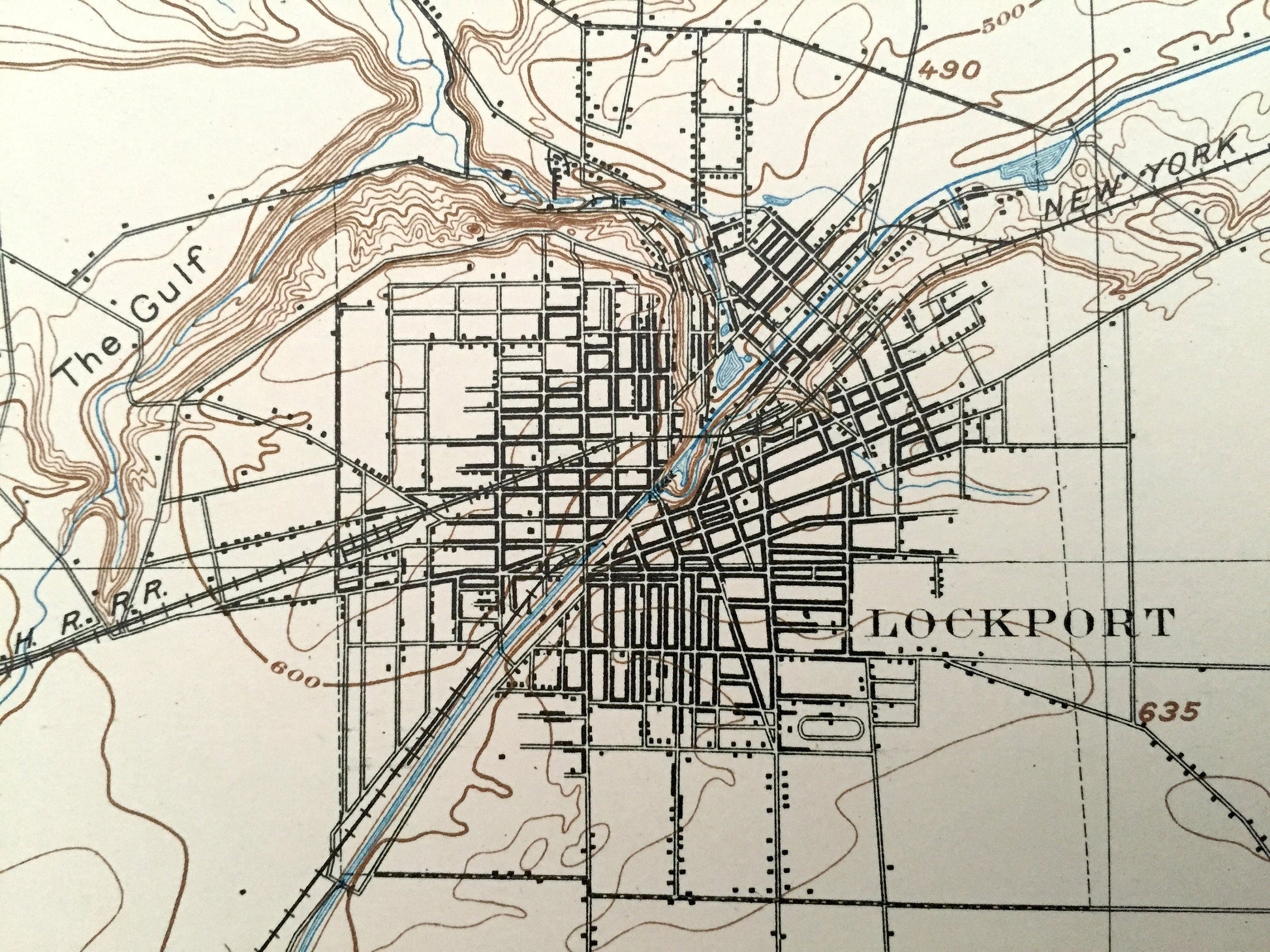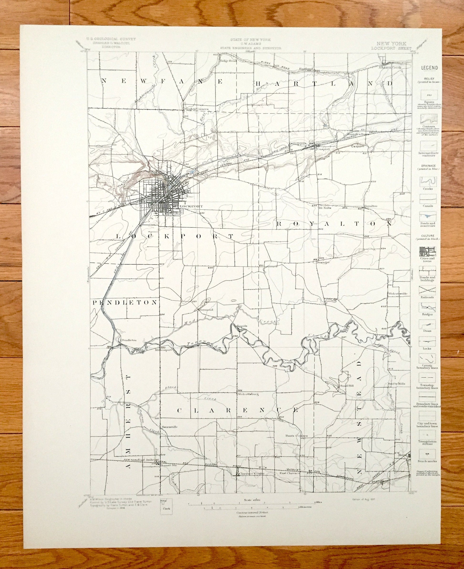 Beautiful, antique map of Lockport, New York and surrounding area on Lake Ontario. This is an authentic 1897 print from the U.S. Geological Survey and NOT a computer reproduction.