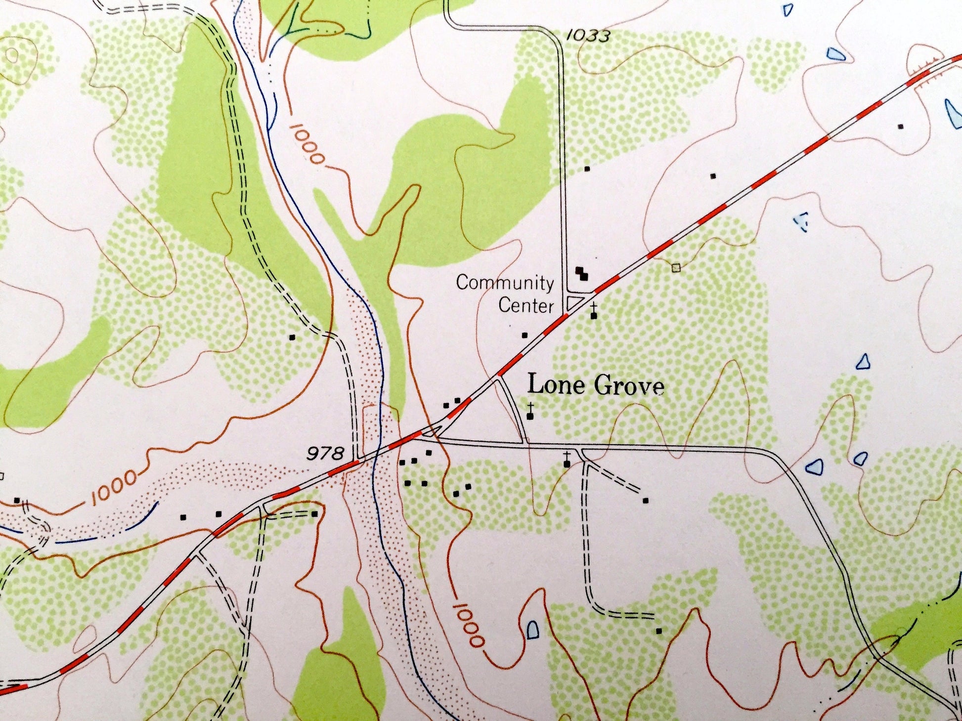 Beautiful, antique map of Lone Grove, Texas. This is an authentic 1956 print from the U.S. Geological Survey and NOT a computer reproduction.