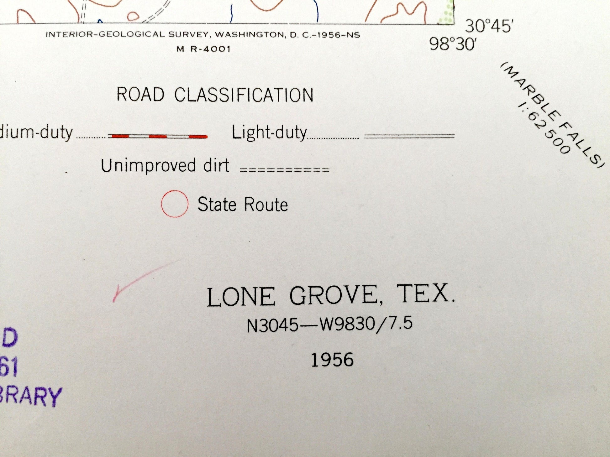 Antique Lone Grove, Texas 1956 US Geological Survey Topographic Map – Lockhart Mountain, Llano River, Cowen Rocks, Point Peak, Llano County