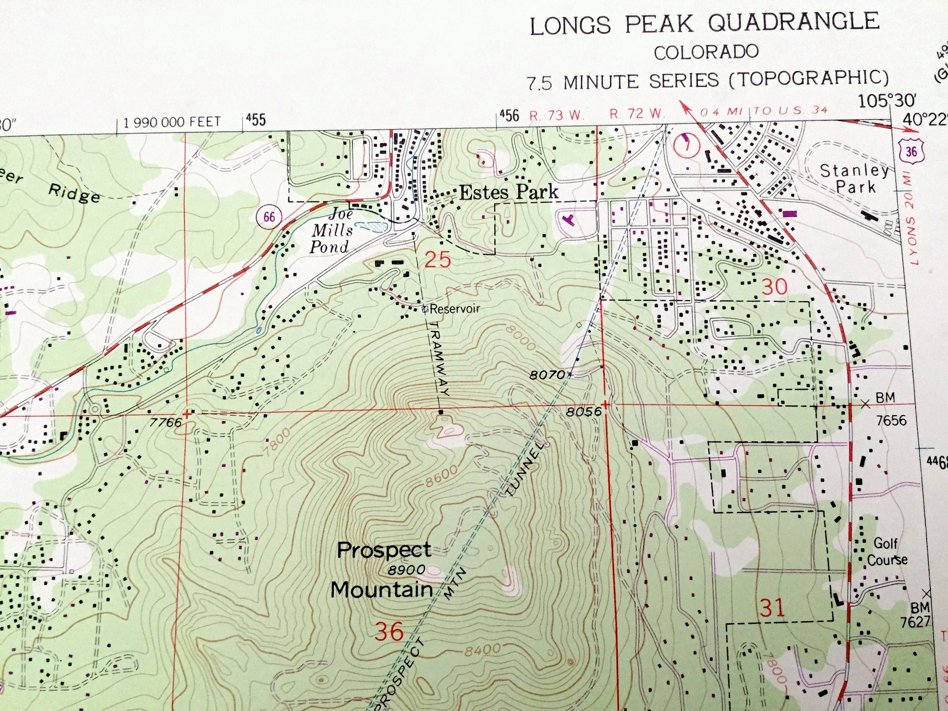 Points of Interest: Estes Park Conference Park (YMCA), Stanley Park, Rocky Mountain National Park, Roosevelt National Forest, Chasm Lake, Twin Sisters Mountain, Giantrack Mountain, Marys Lake, Prospect Mountain, Eagle Cliff Mountain, Moraine Park, Glacier Basin, Tuxedo Park, Deer Mountain, Rams Horn Mountain, Aspen River, Lily Lake, Battle Mountain, Estes Cone, Emerald Mountain, Boulder Brook, Glacier Creek, Aspen Brook, Tahosa Creek, Alpine Brook, and many more smaller ponds, springs, creeks, peaks and mountains.