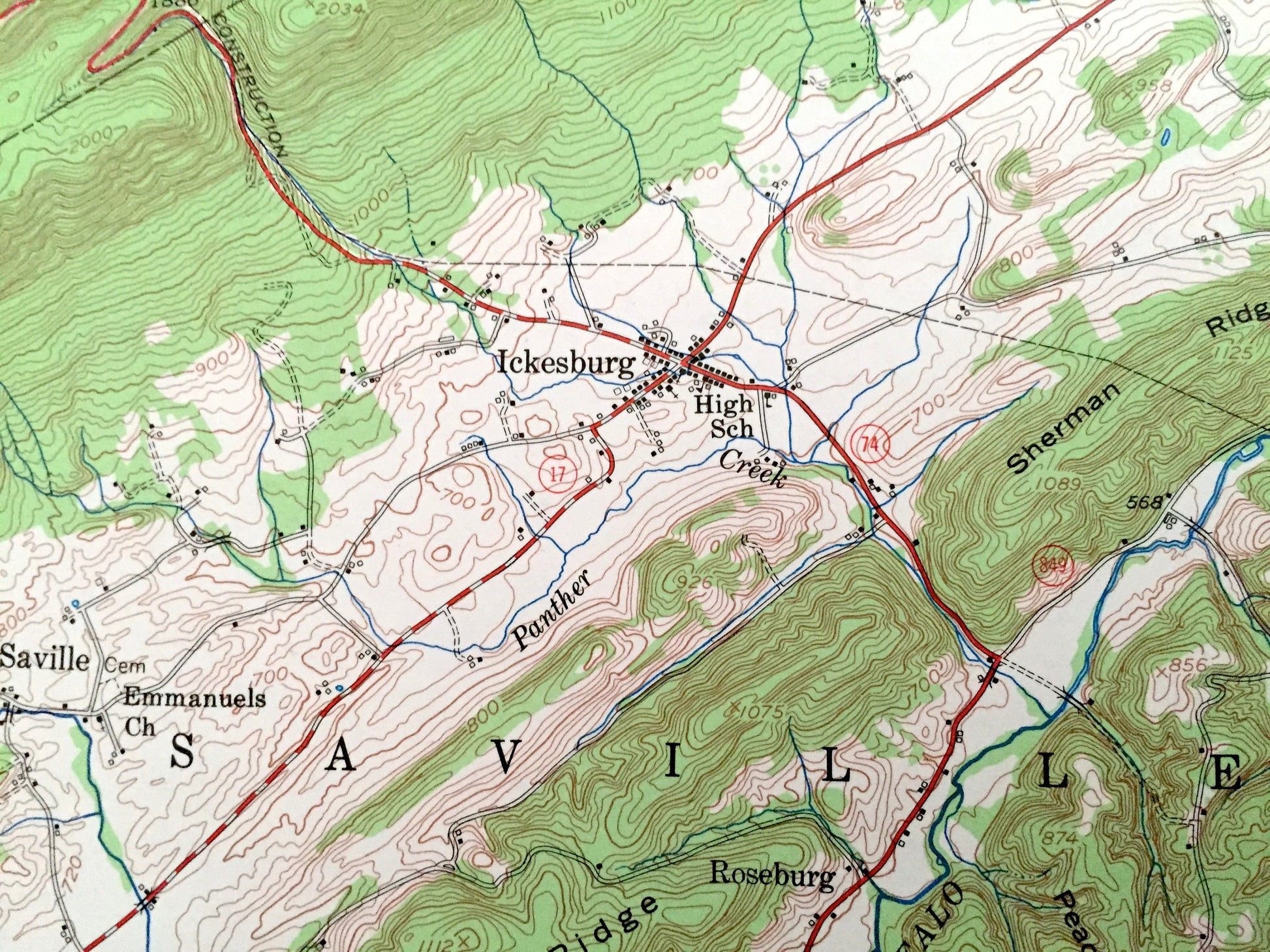 Points of Interest: Perry County, Cumberland County, Juniate County, Buffalo Creek, Tuscarora Mountain, Conococheague Mountain, Buckeye Ridge, Bilman Ridge, Bowers Mountain, Blue Mountain, Sherman Creek, Waggoners Gap, Welch Hill, Mt Dempsey, Limestone Ridge and many more hills, streams, ponds, houses, schools, churches and roads.