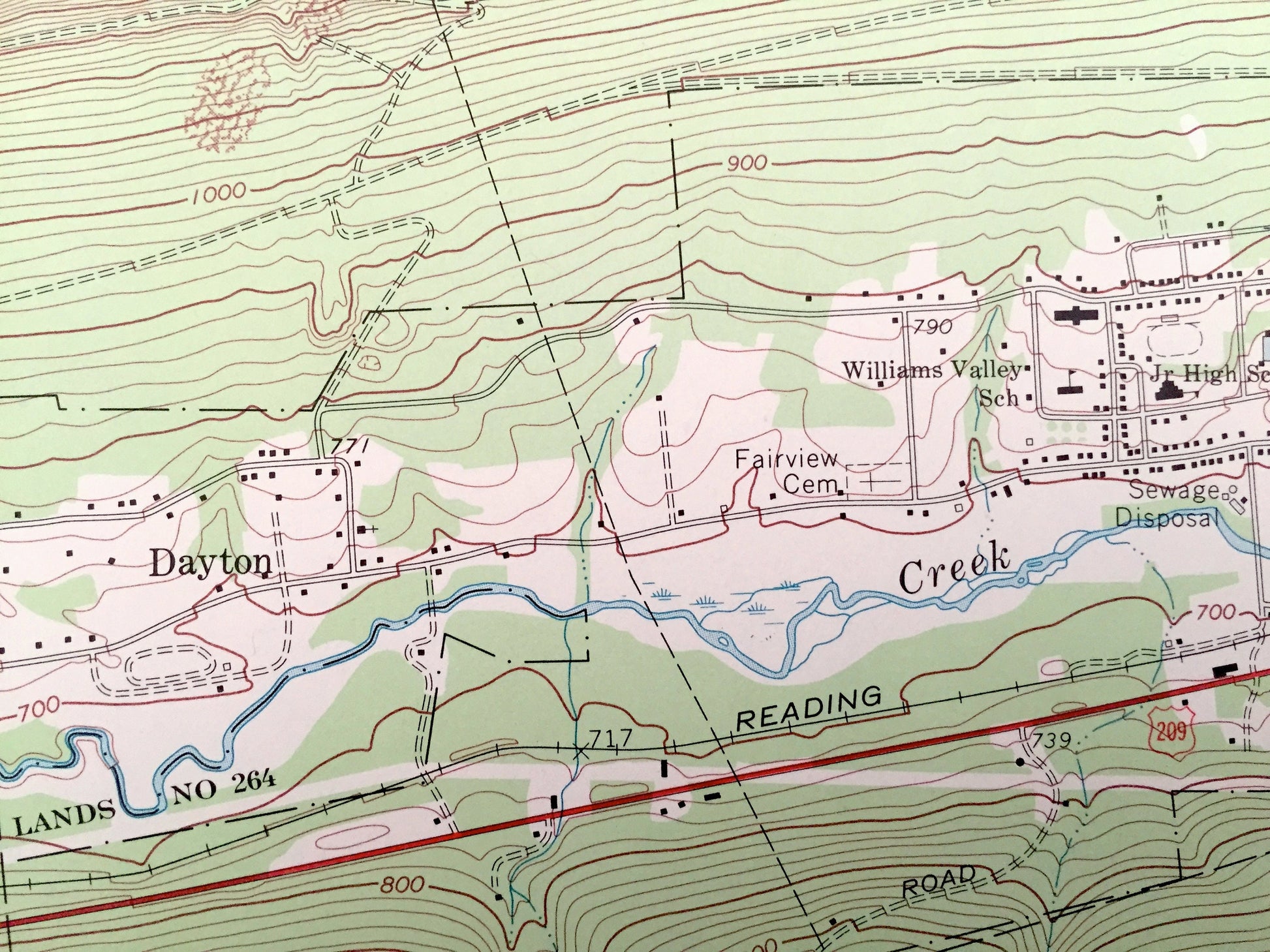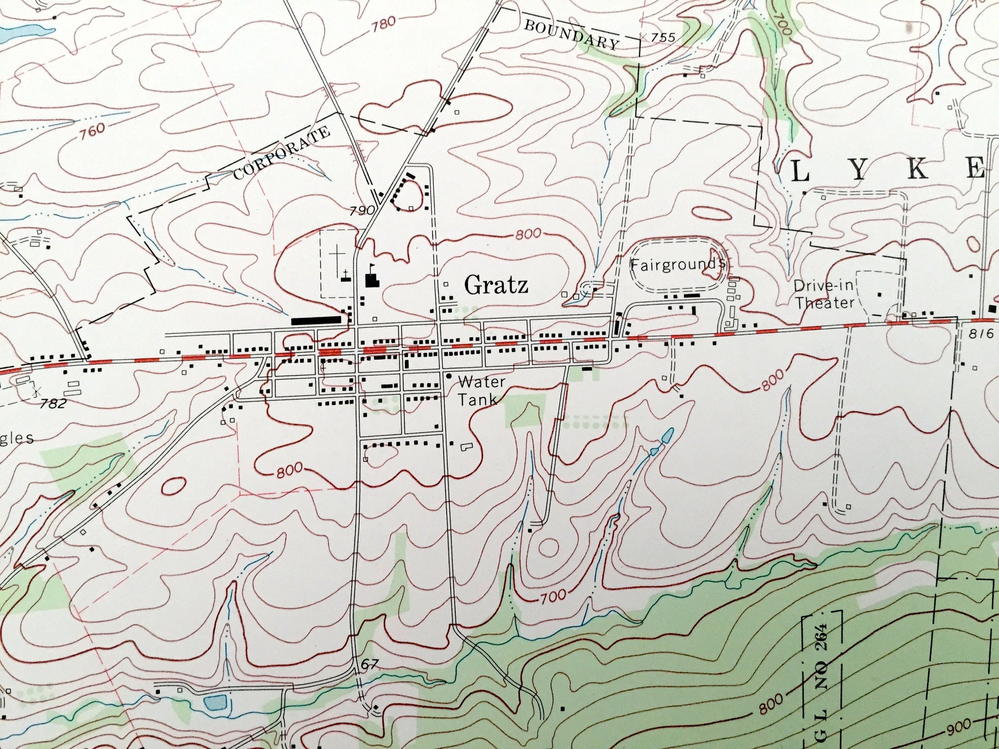 Points of Interest: Short Mountain, Bear Mountain, State Game Lands, Big Lick Mountain, Berry Mountain, Peters Mountain, Round Top, Haldeman State Forest, Broad Mountain, Penn Central Railroad, Reading Railroad, Bear Swamp, Wisconisco Creek, Flying Eagles Airfield, Drive-in Theater, Bear Puddles, Doc Smith Run, Minnich Hit Picnic Area, and lots more hills, streams, ponds, houses, and roads.