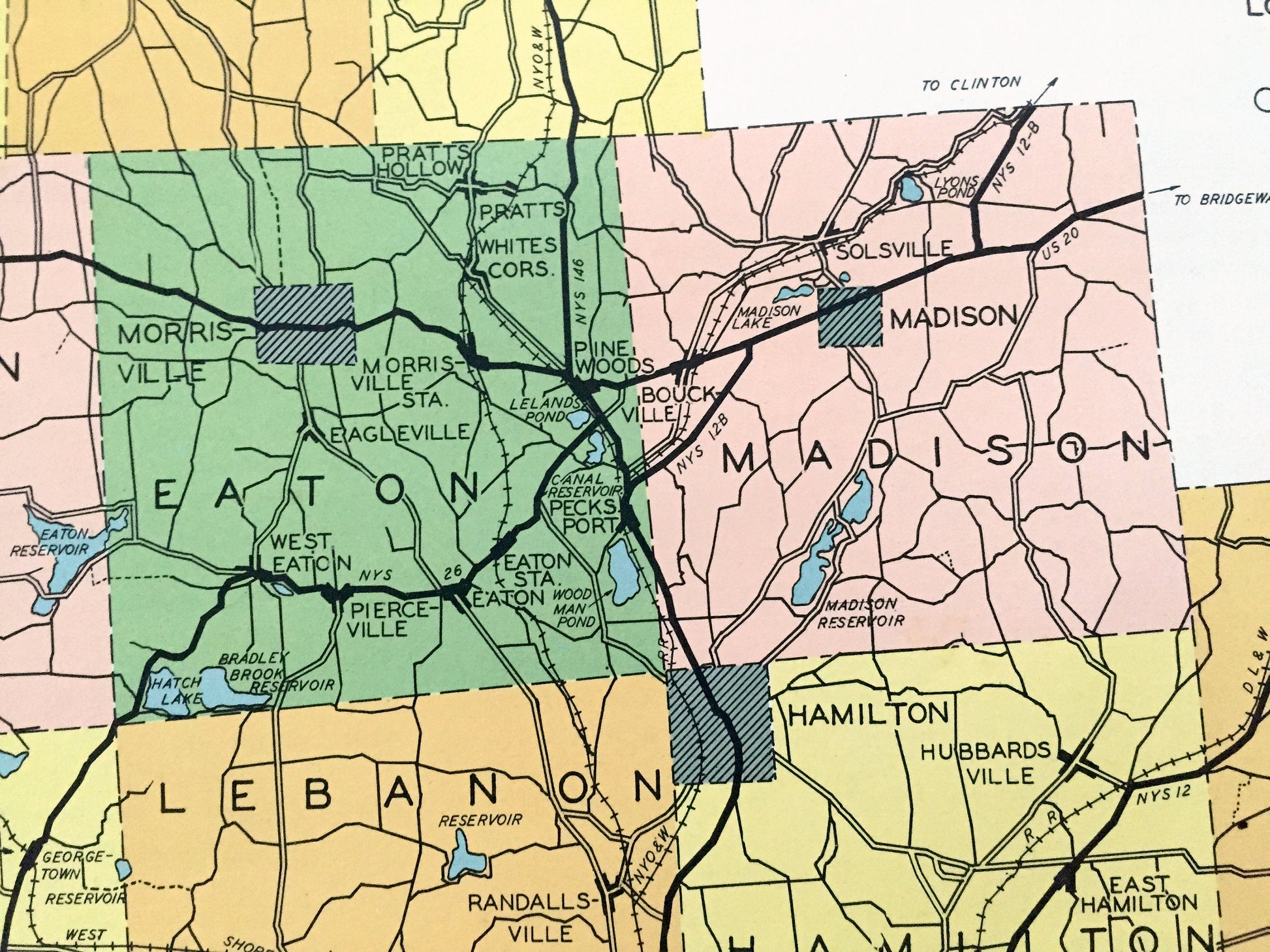Cities & Towns: Sullivan, Lenox, Oneida, Lincoln, Cazenovia, Fenner, Smithfield, Stockbridge, Nelson, Eaton, Madison, De Ruyter, Georgetown, Lenanon, Hamilton, Brookfield, Bridgeport, North Manlius, Chittenango, East Boston, South Bay, Canastota, Kenwood, Oneida Castle, Oneida Valley, Clockville, Merrillsville, Bennett Corners, Perryville, Munn's, Peterboro, Siloam, New Woodstock, Erieville, Morrisville, Pratt's Hollow, West Eaton, Bouekville, Sofsville, Pecksport, Sheds, Randallsville, Moscow, River Forks, Mains Mills, Five Corners, more.
