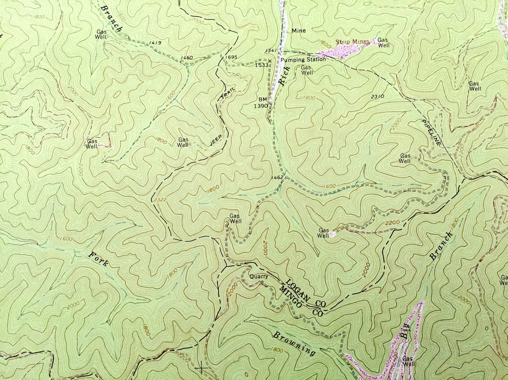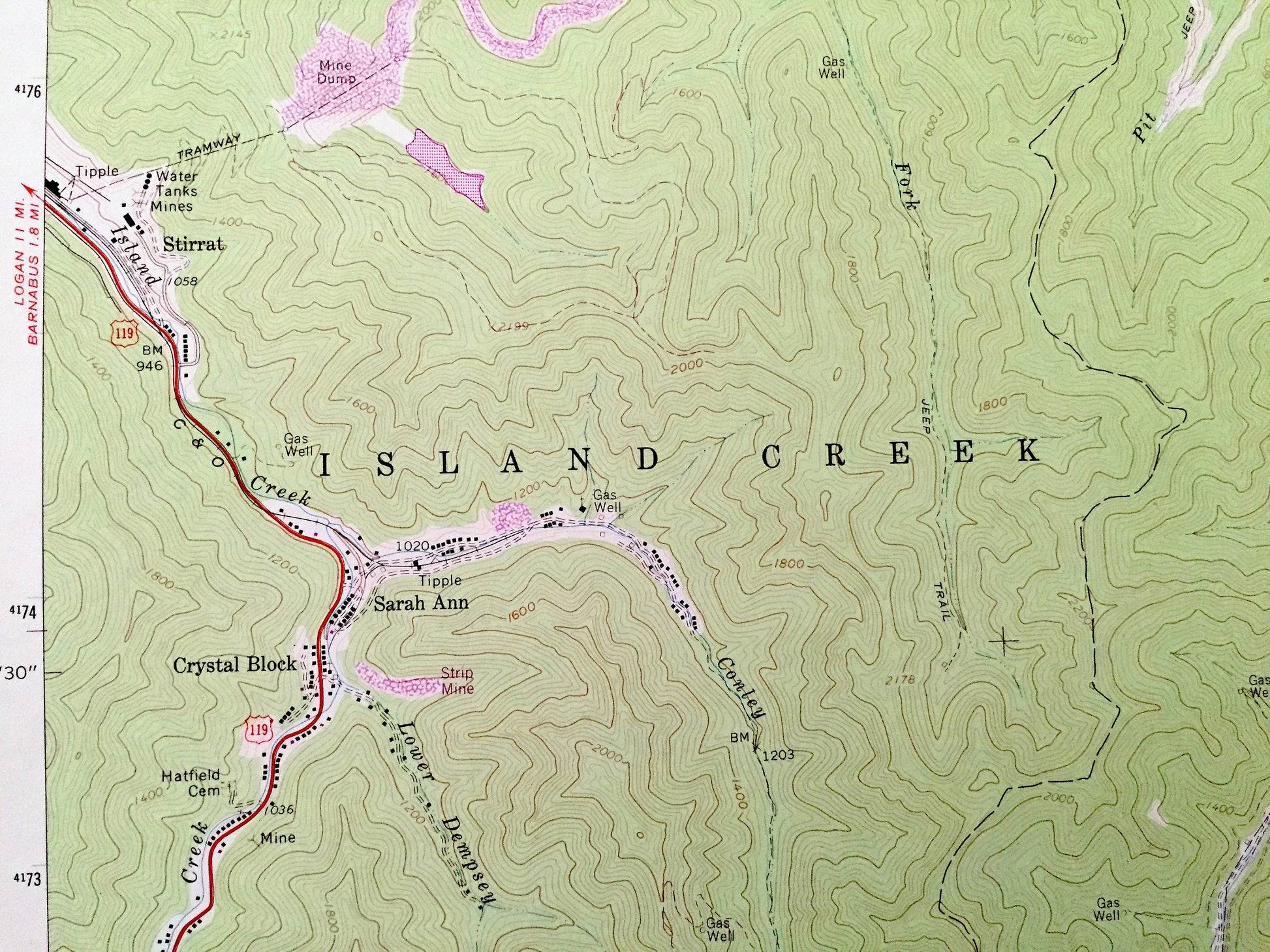 Points of Interest: Mingo County, Logan County, Guyandotte River, Horsepen Creek, Island Creek, Rockhouse Creek, Rich Creek, Pit Branch Creek, and lots more hills, mountains, creeks, towns, roads and train tracks.