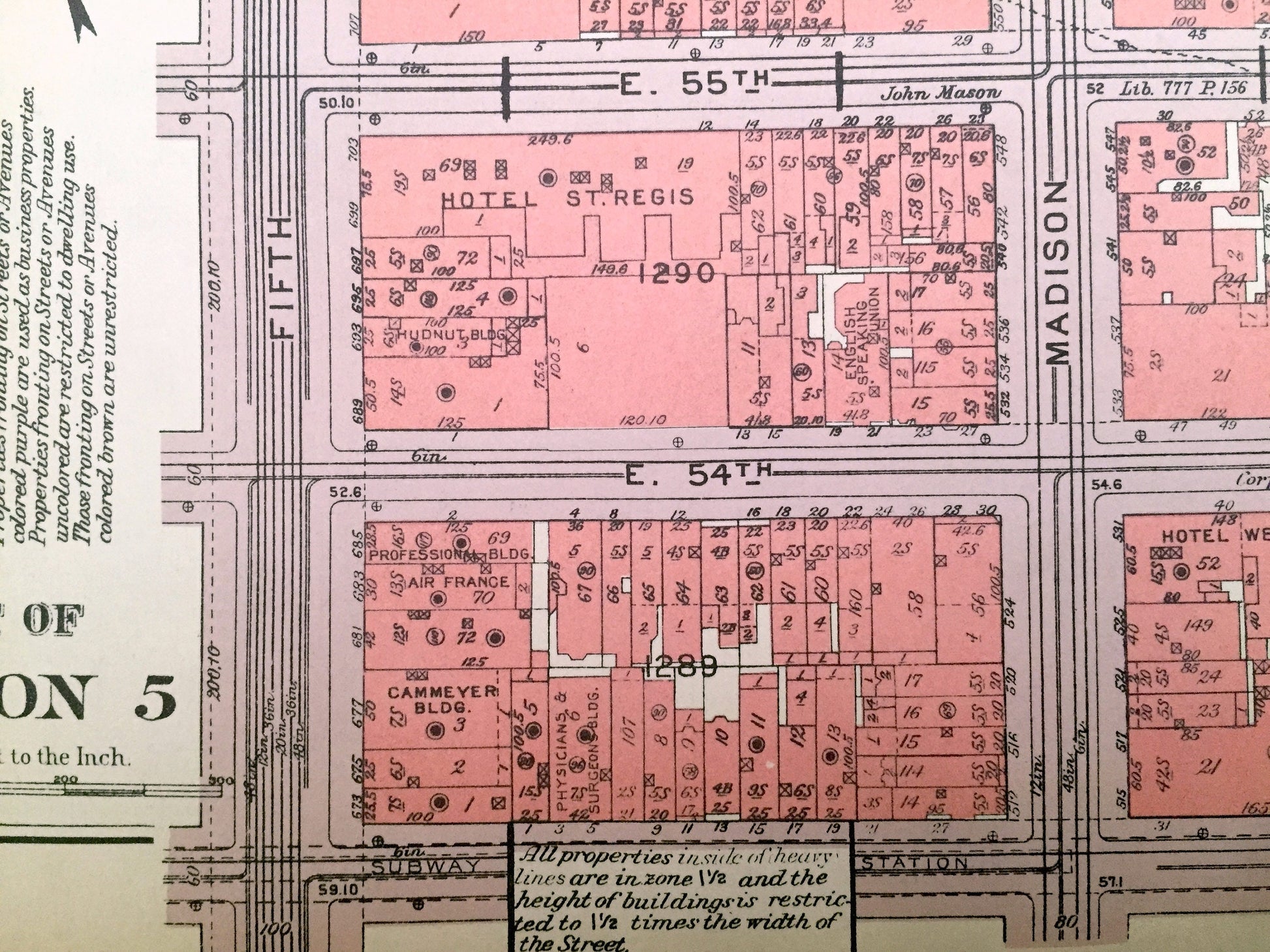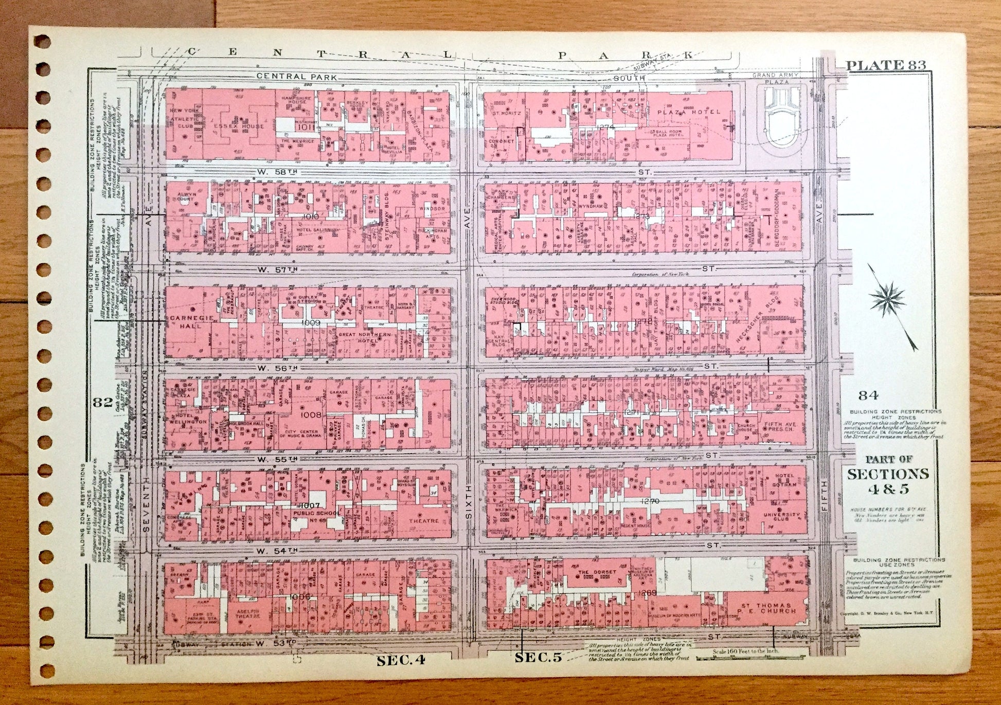 Antique Manhattan, New York City Map from Bromley's 1955 Manhattan Land Book – Central Park South, Theater District Midtown East Clinton NYC