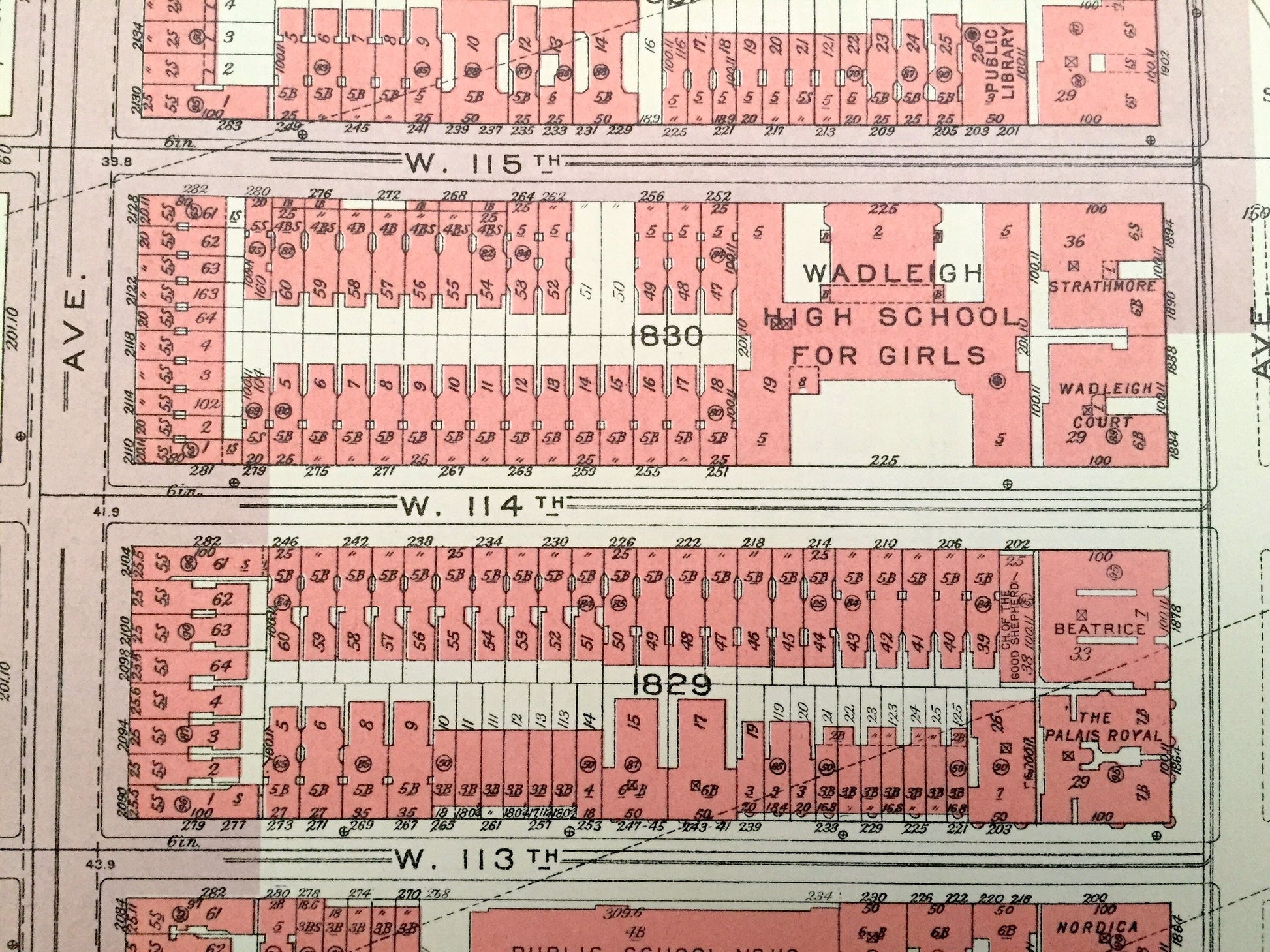 Antique Manhattan, New York City Map from Bromley's 1955 Manhattan Land Book – Morningside Heights, Manhattan Valley Central Park Harlem NYC